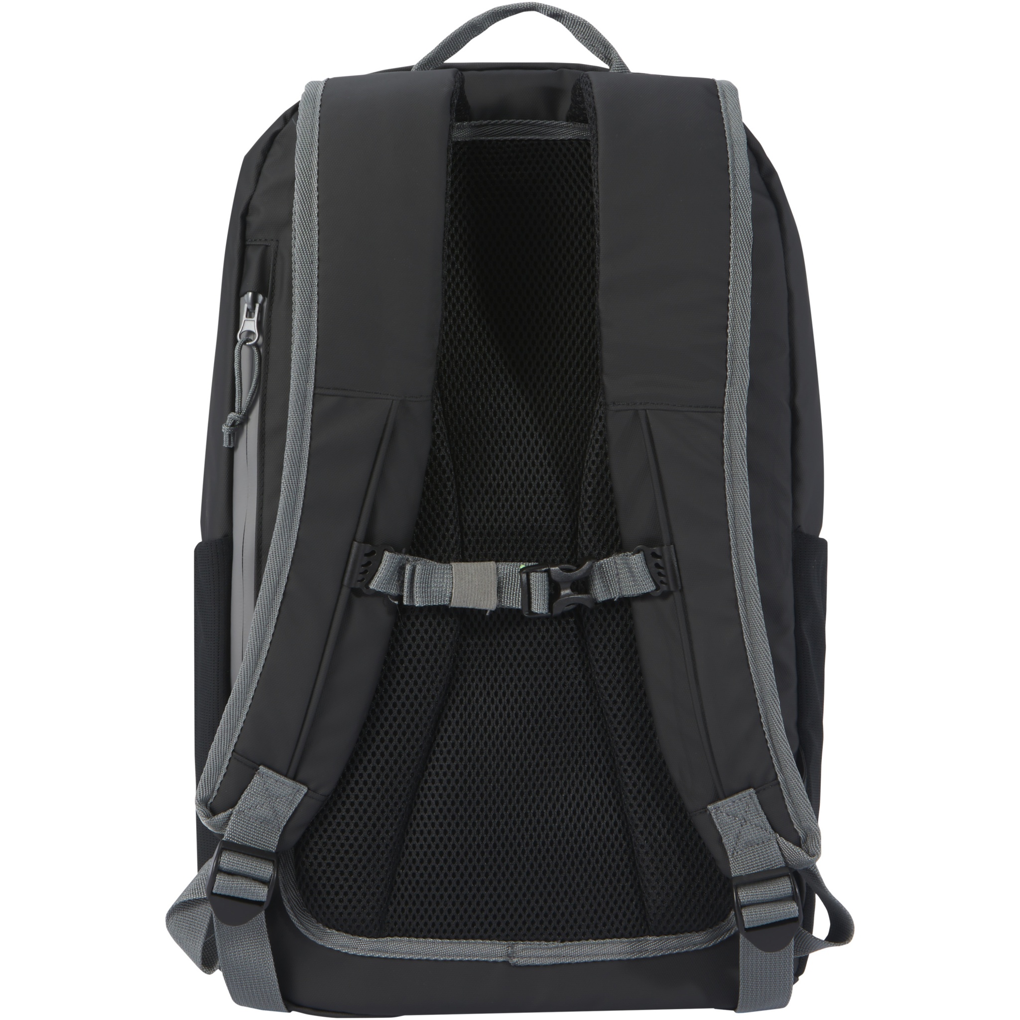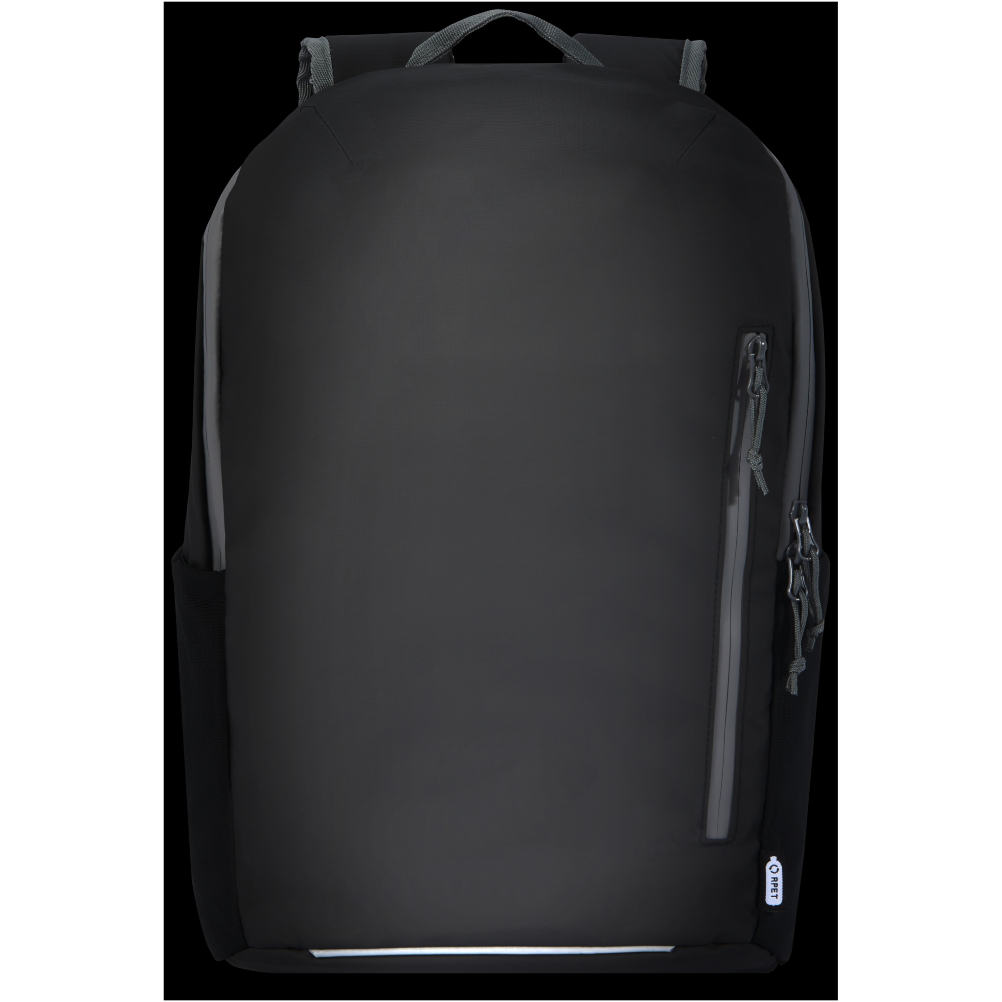 Vedenkestävä reppu kannettavalle tietokoneelle. Repun osat, mukaan lukien vetoketjut, on valmistettu GRS-sertifioiduista kierrätysmateriaaleista. Repussa on pehmustettu, sivusta avautuva lokero 15 tuuman kannettavalle tietokoneelle, useita verkkotaskuja, vetoketjullinen etutasku ja heijastava kaitale näkyvyyttä tuomaan. Pehmustetun selkäosan ja rinnan yli kulkevan säädettävän hihnan ansiosta reppua on mukava kantaa silloinkin, kun se on täynnä. Repun kangas, vuori, nauha ja vetoketjut on valmistettu GRS-kierrätysmateriaaleista. Tilavuus: 21 litraa. PVC-vapaa.