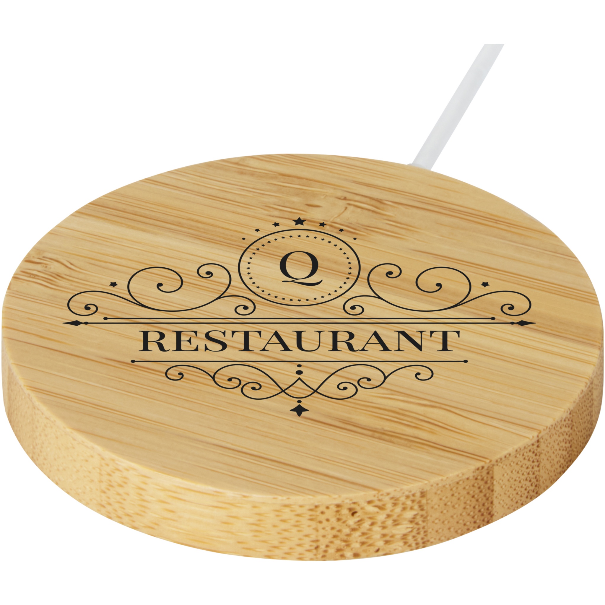 Logo trade mainoslahjat ja liikelahjat kuva: Atra 10 W:n bambusta valmistettu langaton latausalusta