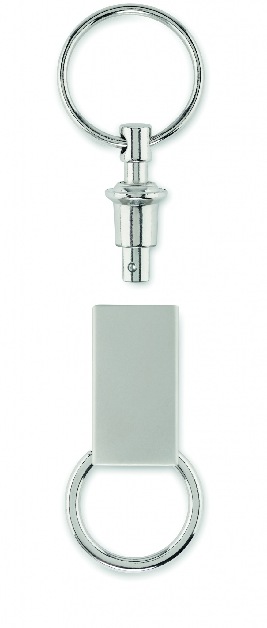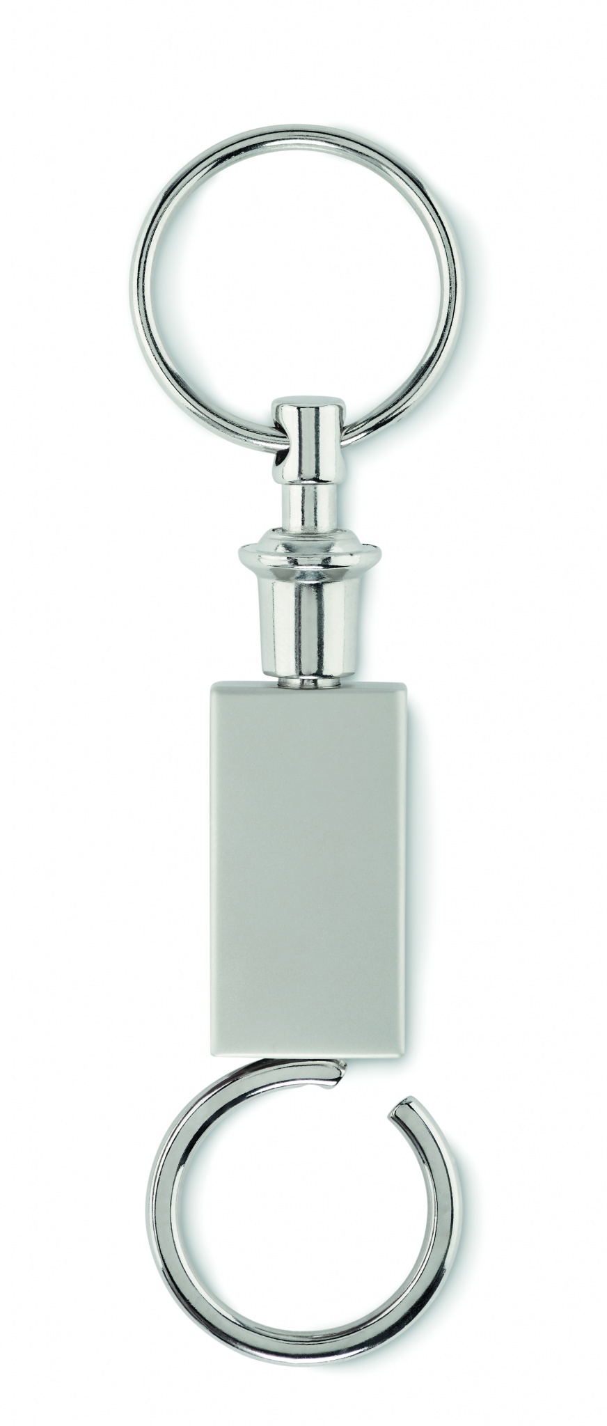 2 in 1 -avainrengas sinkkiseoksesta. Vedä avainrengas irti ja siinä on 2 avainrengasta.
