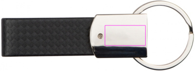 Tyylikäs metallinen avaimenperä hiilikuituisella hihnalla. Logosi kaiverretaan kromatulle pinnalle.