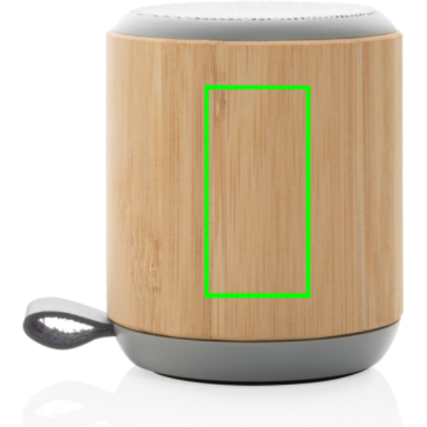 Bambuinen 3W kaiutin sisäänrakennetulla 300mAh:n litiumakulla. Toistoaika jopa 3 tuntia yhdellä latauksella, ja toimintaetäisyys BT5.0 avulla on 10 metriä. Valmistettu luonnollisesta bambusta ja kankaasta.