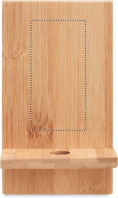 Bambusta valmistettu puhelinalusta, tuote koostu kahdesta osasta. Luonnollisen materiaalin (bambu) vuoksi, tuotteiden värissä/ koossa saattaa olla erinäisyyksiä ja tämä voi vaikuttaa painatuksen lopputulokseen.