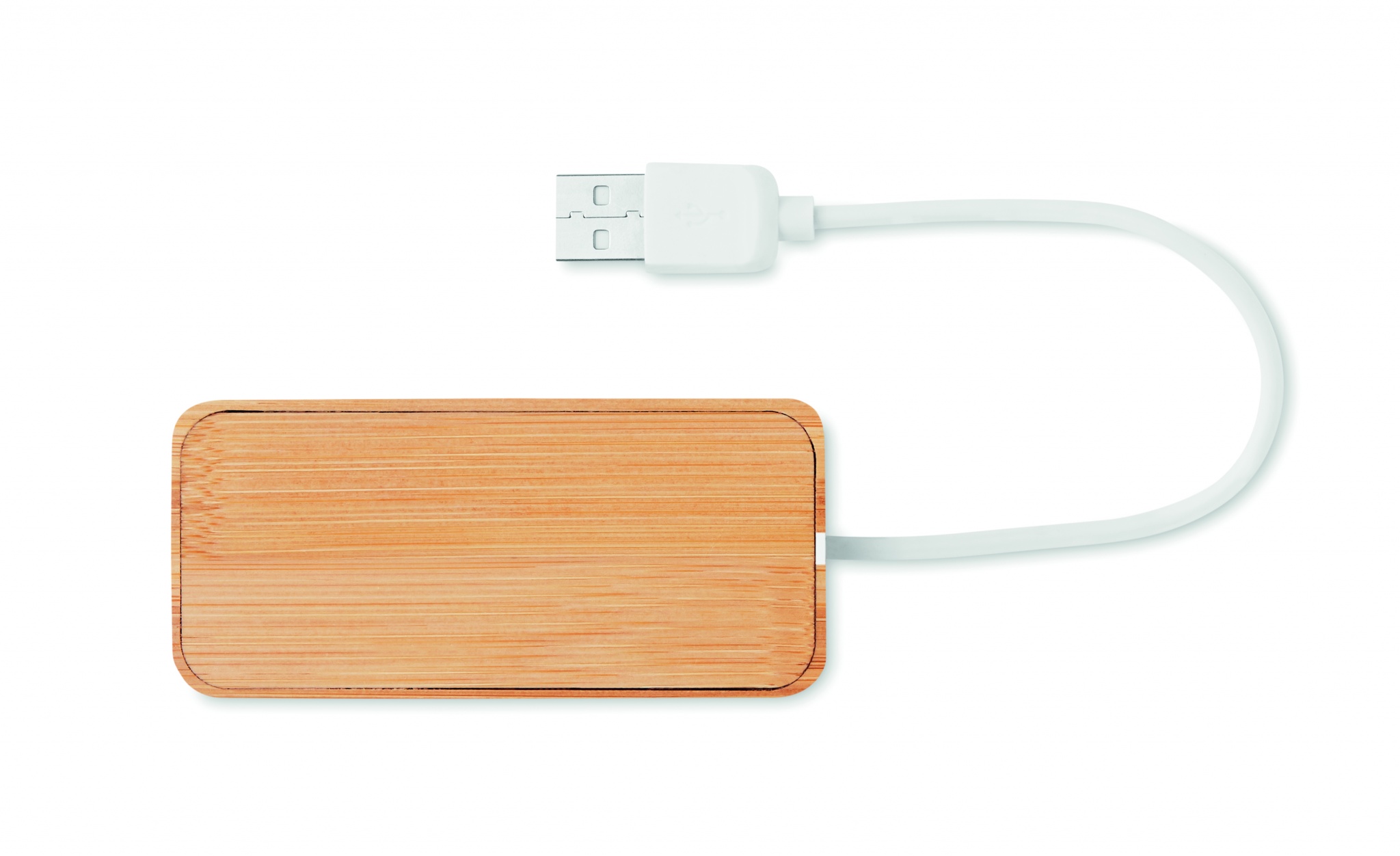 3-porttinen 2.0 USB- keskitin bambukotelossa, kaapelin pituus 18,5 cm. Luonnollisen materiaalin (bambu) vuoksi, tuotteiden värissä/ koossa saattaa olla erinäisyyksiä ja tämä voi vaikuttaa painatuksen lopputulokseen.