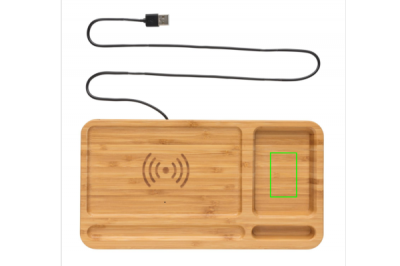 Logo trade mainoslahja kuva: Bambupöytäteline, 5 W:n langaton laturi