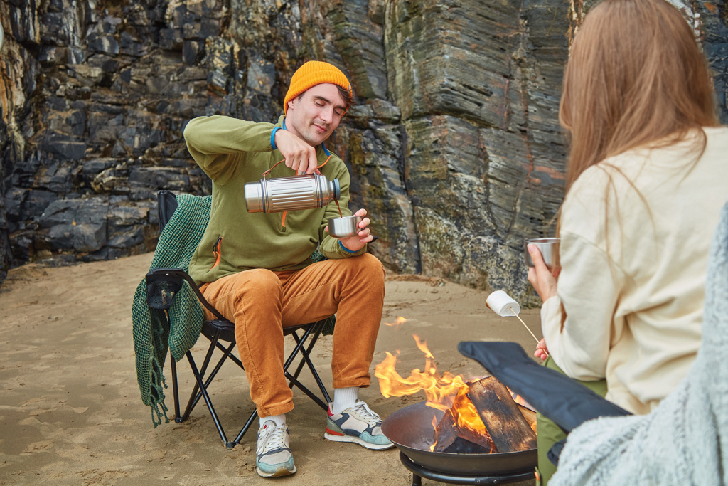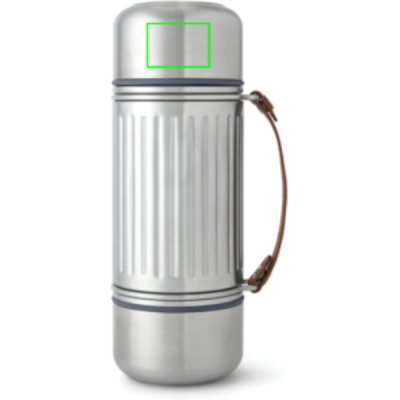 Tämä 1 litran tyhjiöeristetty ruostumattomasta teräksestä valmistettu termospullo on tehty kaikenlaisiin seikkailuihin – olitpa sitten vaeltamassa, rentoutumassa rannalla tai laskettelemassa. Vahvistetun rakenteensa ja kestävän muotoilunsa ansiosta se pitää juomat höyryävän kuumina tai jääkylminä jopa 24 tunnin ajan. Pullo on täysin vuotamaton ja siinä on teräskansi, jossa on helppokäyttöinen kaatomekanismi sekä kaksi kaksiseinäistä ruostumattomasta teräksestä valmistettua kuppia jakamiseen. Leveäpohjaiset kupit tarjoavat lisävakautta epätasaisilla alustoilla, ja paksu nailonhihna helpottaa kantamista ja kaatamista. Silikonitiiviste estää valumisen, kun kupit ovat kiinni, ja pullo voidaan pestä astianpesukoneessa, kun hihna on poistettu.