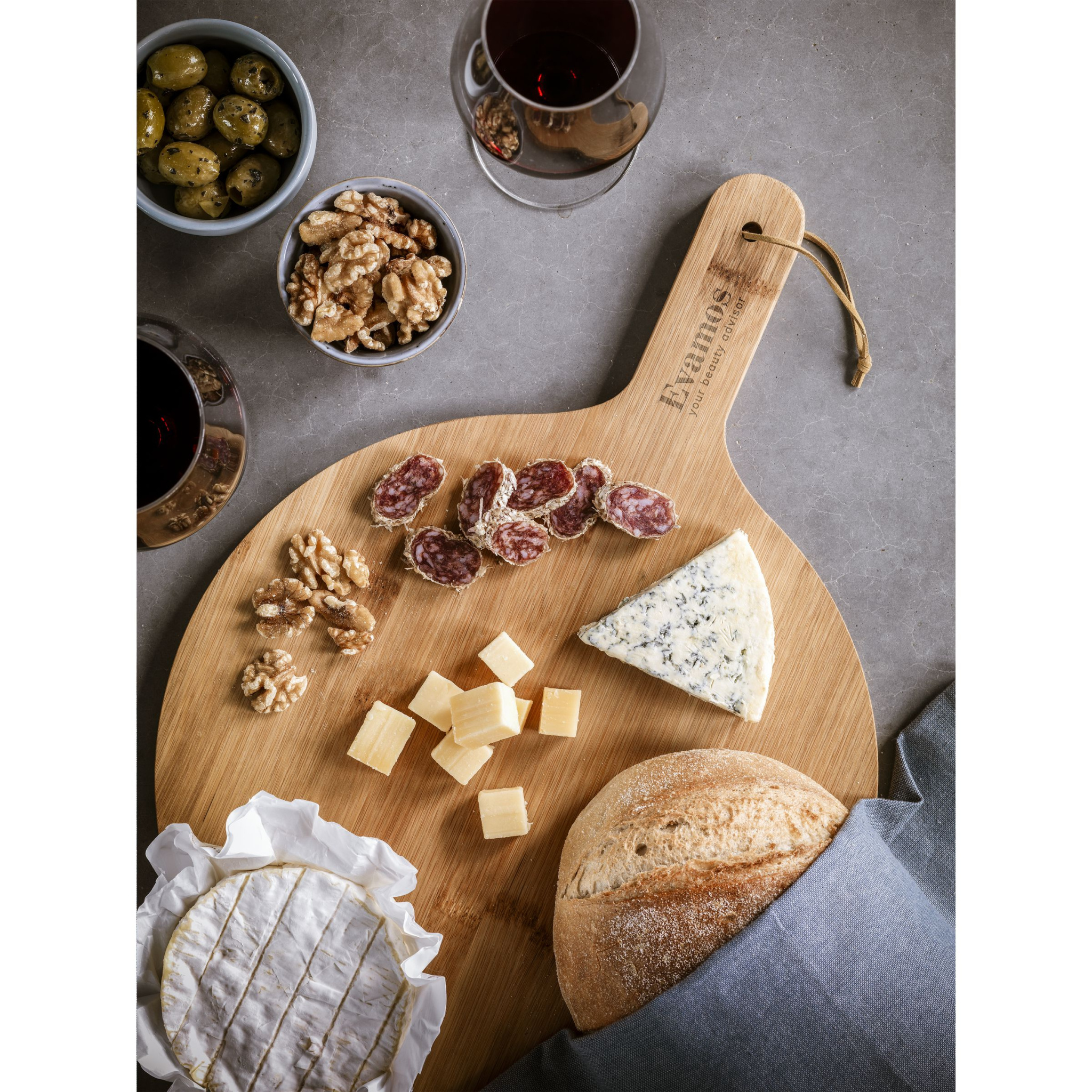 Pyöreä tarjoilulauta nahkanauhalla. Valmistettu vahvasta, kiillotetusta, FSC 100 % sertifioidusta bambusta. Hygieeninen, antibakteerinen ja helppo puhdistaa. Tässä laudassa on suuri tarjoilualue, jonka halkaisija on vähintään 31,5 cm. Reilu koko pizzan tai tapaksen tarjoiluun juhlien ja juomien kanssa. Sopii myös sekä juustolaudaksi että leikkuulaudaksi. HUOMAA: Bambun luonnollisten rakeiden ja ääriviivojen vuoksi emme voi taata kaiverruksen syvyyden/värin yhtenäisyyttä. Jokainen tuote toimitetaan erillisessä ruskeassa pahvilaatikossa.