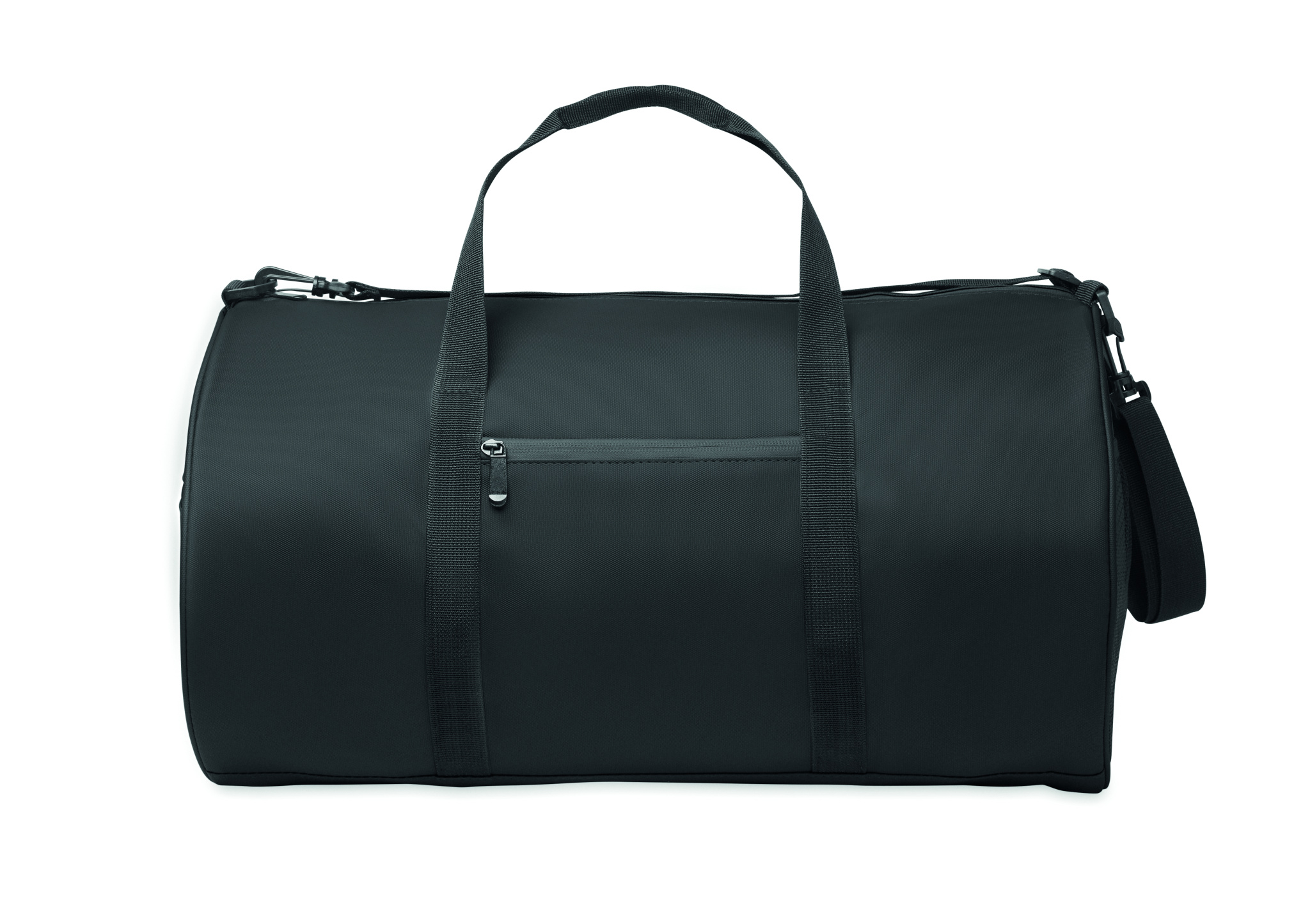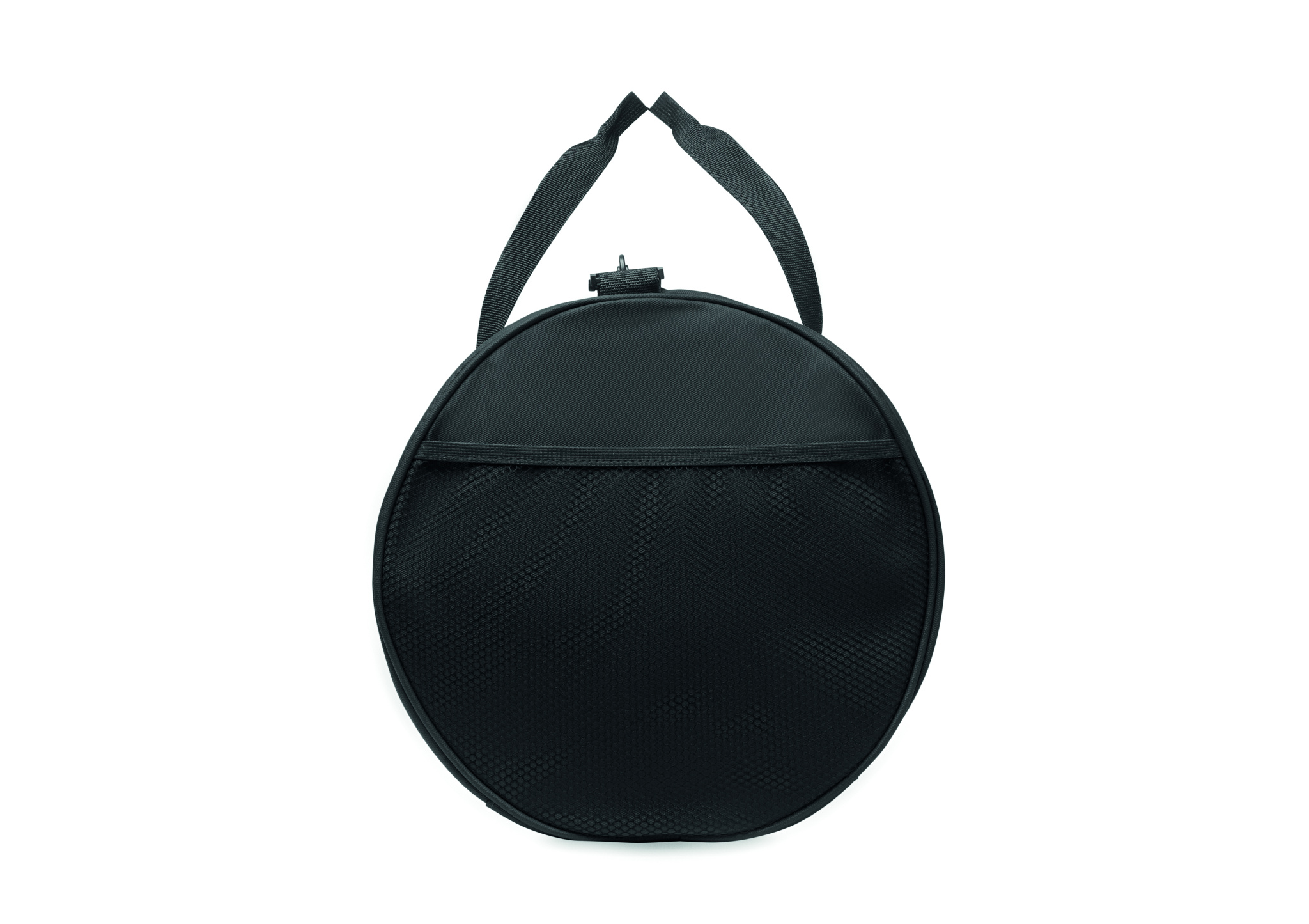 Duffelilaukku 600D RPET -polyesteriä PU-pinnoitteella. Vetoketjullinen etutasku. Sisällä 210D RPET -polyesterivuori. Yksi vetoketjullinen sivutasku / yksi sivuverkkotasku. Vetoketjullinen sisätasku.