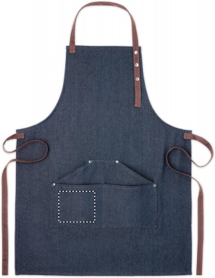 Säädettävä 240 gr/m² denim esiliina, 3 etutaskulla ja puuvilla hihnoilla. Pakattuna erilliseen laatikkoon.