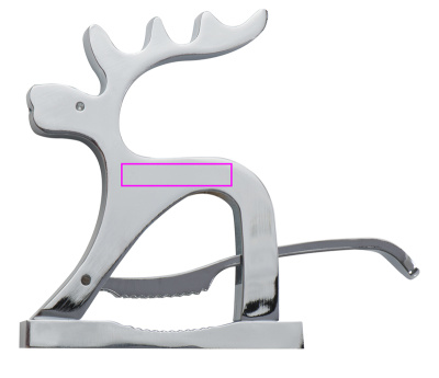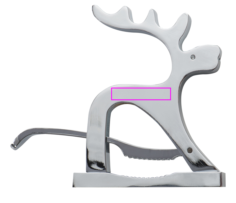 Laadukas pähkinänsärkijä metallista hirven muotoinen. Murtaa mutterit vipumekanismilla. Logosi kaiverretaan laserilla hirveen.