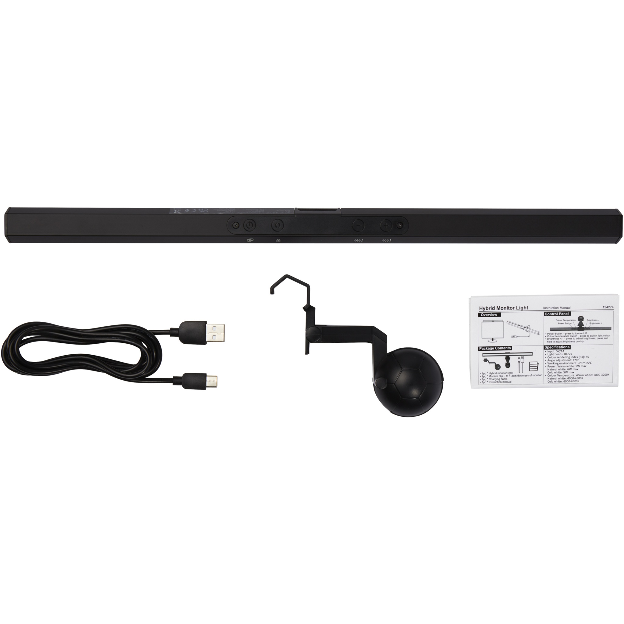 Näyttövalo säädettävällä kulmalla ja epäsymmetrisellä optisella rakenteella, joka valaisee vain työpöydän ja poistaa ruudulta heijastuvan häikäisyn, jota syntyy useimmista tavallisista pöytävalaisimista. 84 korkealaatuisen LED-helmen ansiosta tämä lamppu säteilee tasaista, pehmeää ja välkkymätöntä valoa, joka voi vähentää silmien väsymystä ja suojata silmiä. Valo sopii mihin tahansa näyttöön, jonka paksuus on 3 mm - 10 mm, ilman ruuveja, jotka voivat vaurioittaa näyttöä. Säädettävä kirkkaus 5–100 % 2800–6500 K:n värilämpötilassa. Lämpimän valon avulla voit rentoutua ja viileän valon avulla voit keskittyä ja parantaa työtehoa. Näyttövalon värintoistoindeksi on yli 85, mikä voi säilyttää useimmat näytön värit. Toimitetaan korkealaatuisessa voimapaperipakkauksessa, jossa on värikäs tarra.