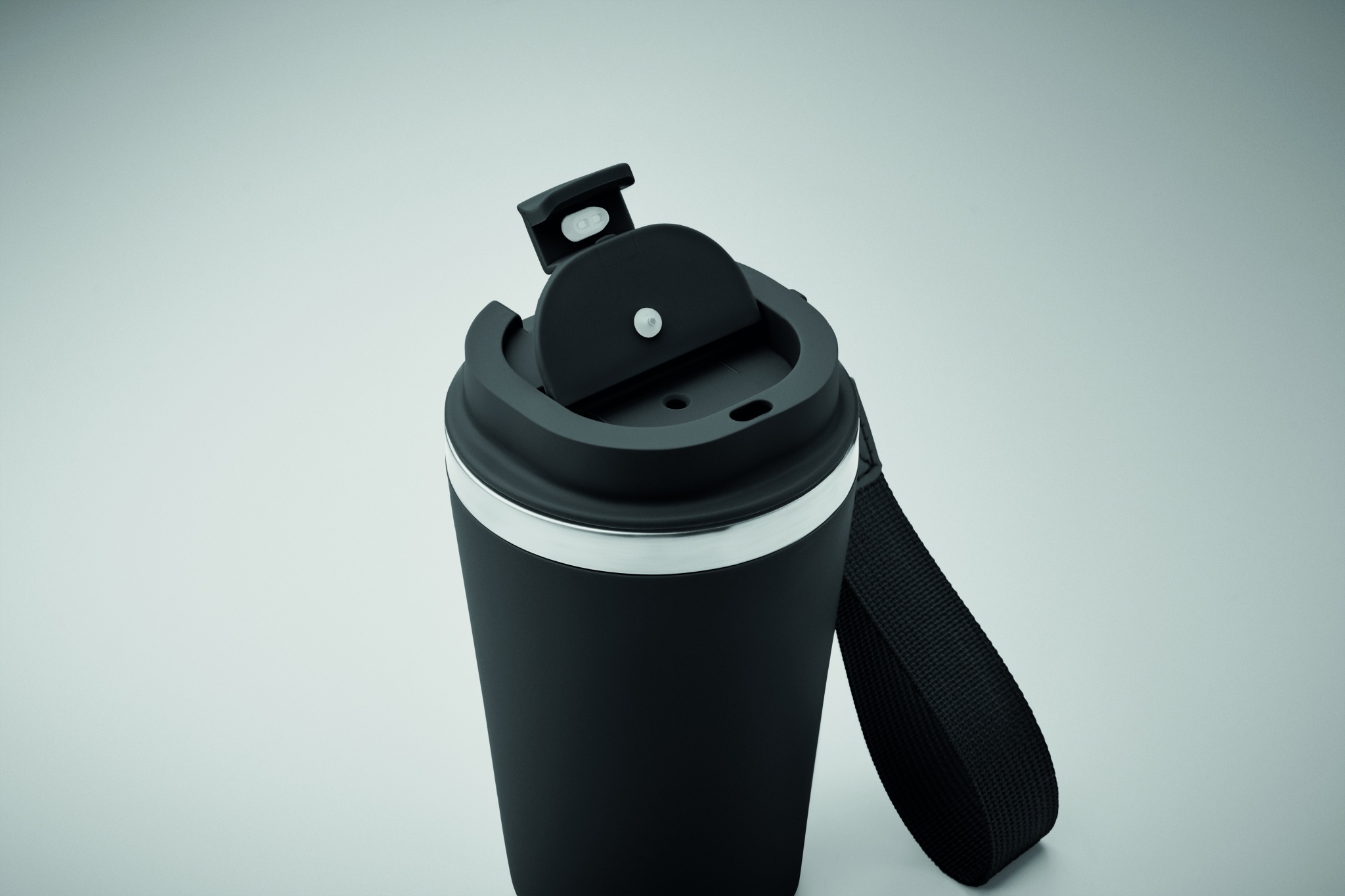 Kaksiseinäinen juomapullo kierrätetystä ruostumattomasta teräksestä (90 % kierrätettyä ruostumatonta terästä ja 10 % ruostumatonta terästä), jossa on kierrätetty PP-ulkokerros ja RPET-rannehihna. Tilavuus: 350 ml.