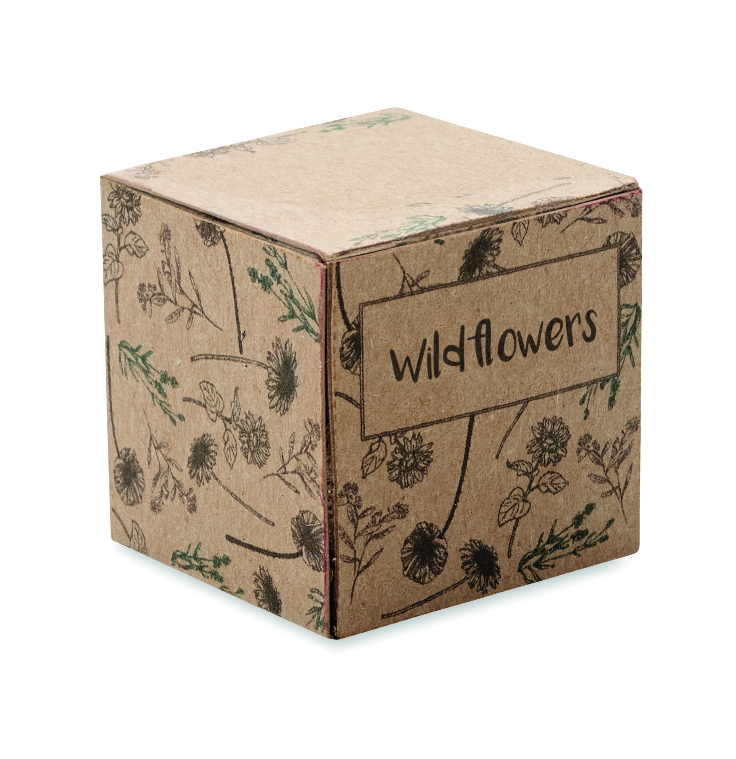 Siemenviljelysetti pahvilaatikossa. Sisältää luonnonkukkasekoituksen siemeniä. Valmistettu EU:ssa.