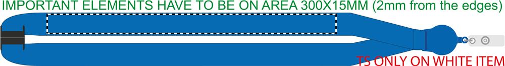 20 mm leveä kaulanauha hissijojolla ja turvalukko niskassa. Sublimaatiopainatus ainoastaan valkoiseen tuotteeseen.
