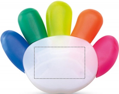 Käden muotoinen 5 värin korostuskynä.