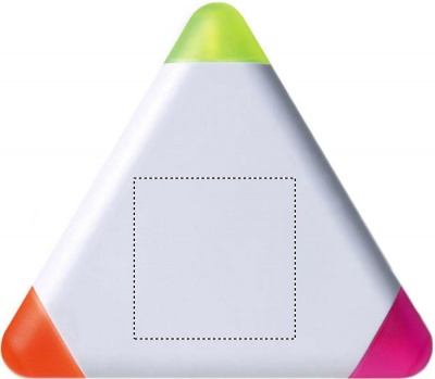 Kolmion muotoinen korostuskynä ABS-muovi kotelossa, 3 eri korosteväriö keltainen, fuksia ja oranssi.