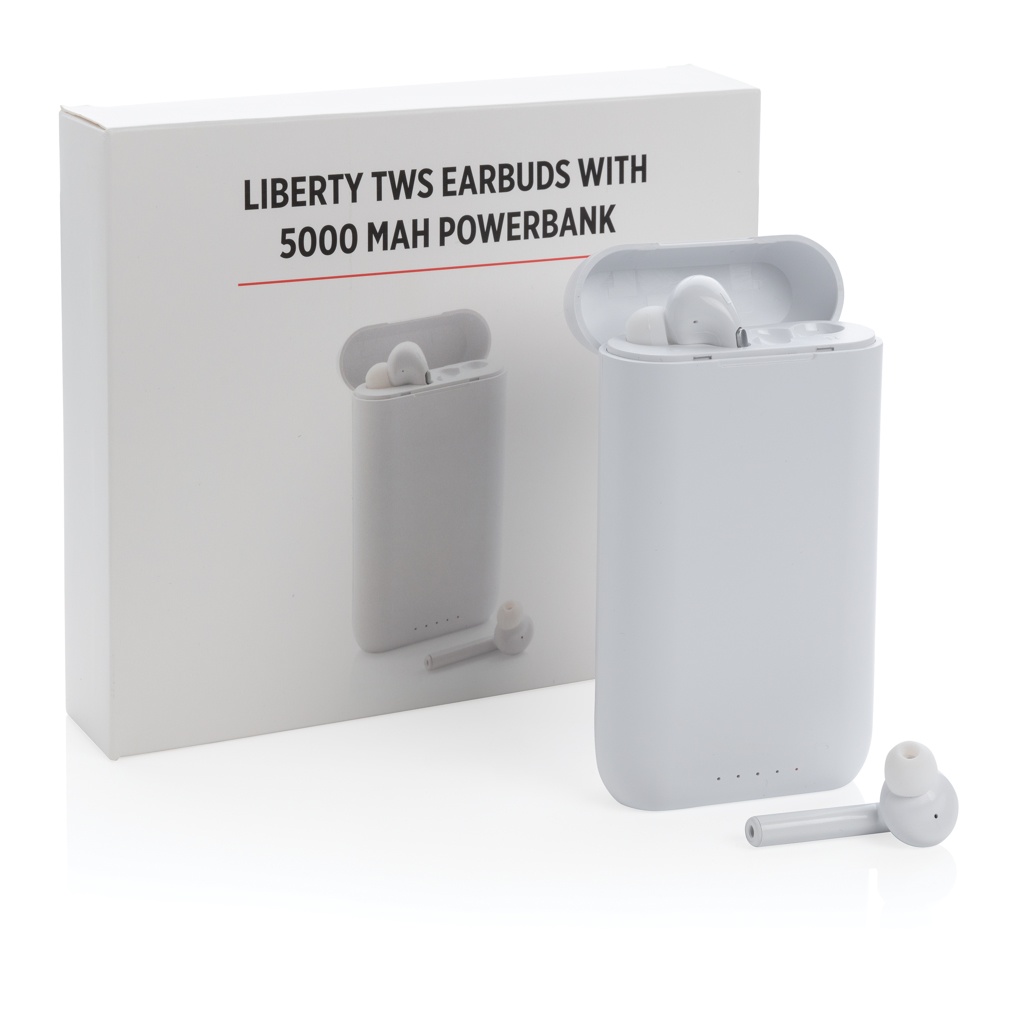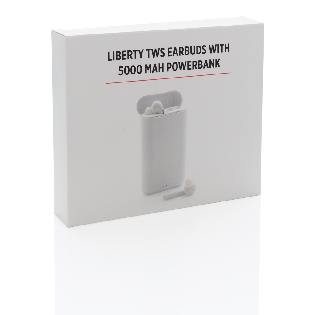 Logo trade mainostuote kuva: Liberty TWS nappikuulokkeet 5.000 mAh varavirtalähteellä