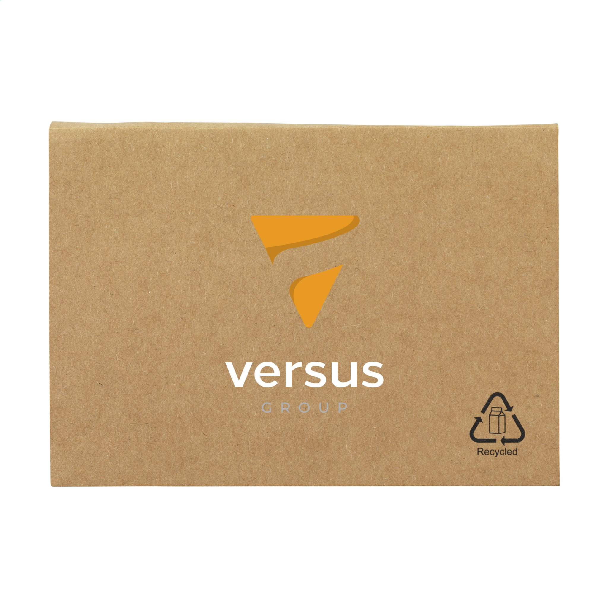 Vau! Kierrätetyistä maitopakkauksista valmistettu muistilappu. Sisältää 75 itseliimautuvaa muistioarkkia kahdessa koossa ja 75 hämmästyttävän värikästä kirjoitettavaa itseliimautuvaa merkintätarraa. Maitolaatikot koostuvat alumiinista, paperista ja muovista. Nämä materiaalit on erotettu toisistaan, jotta tämän muistikirjan kansi tehdään jäljelle jäävästä paperista. Kierrätysmateriaalien käytöstä johtuen materiaalissa saattaa näkyä pieniä epätasaisuuksia. Tämä antaa tuotteelle ainutlaatuisen ilmeen.