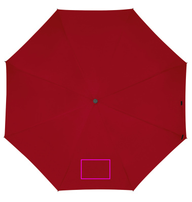 Tyylikäs taskusateenvarjo, jossa kumitettu karabiinikahva. Painamme logosi segmenttiin.