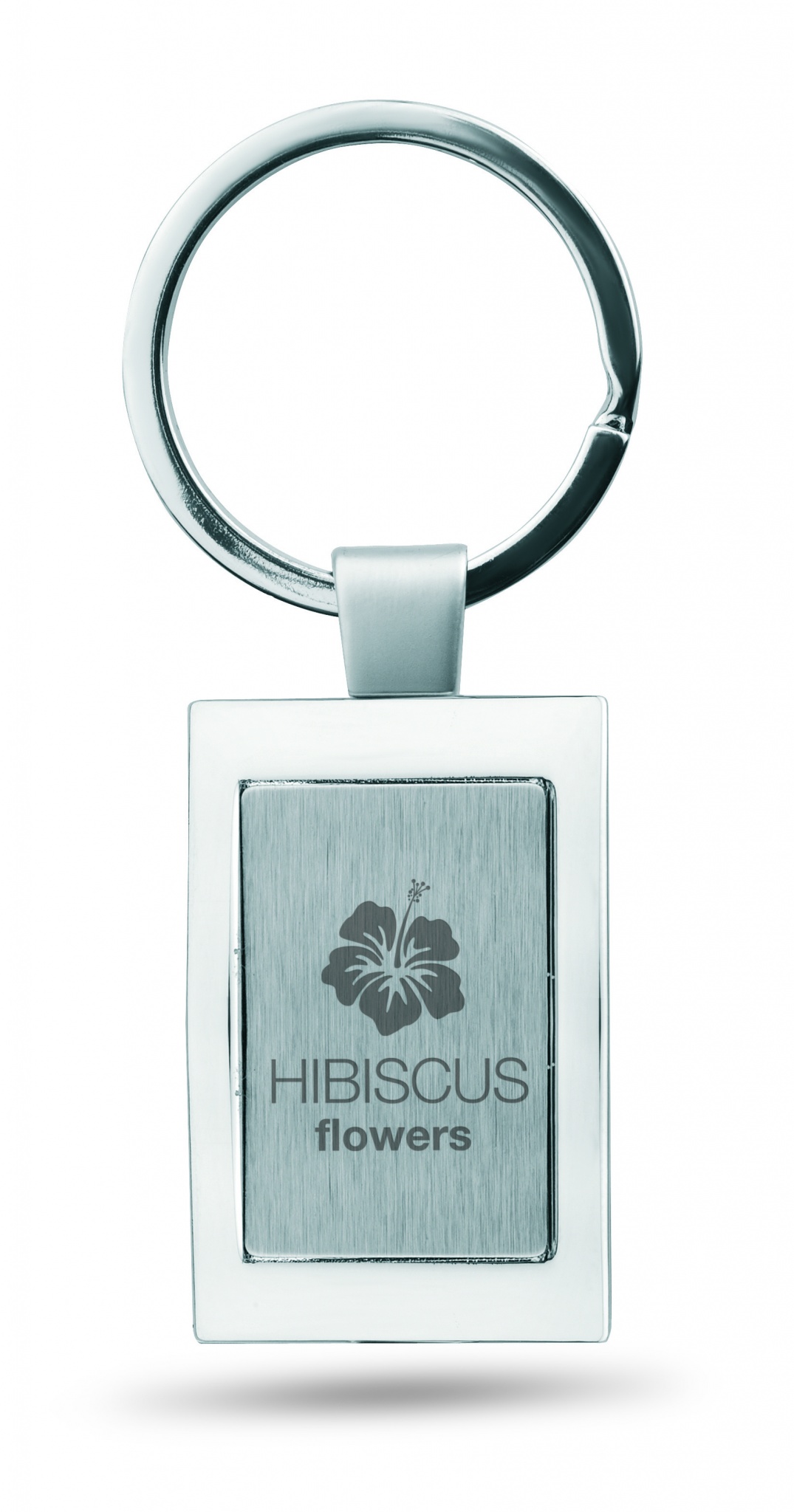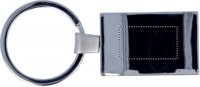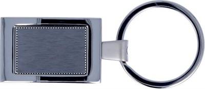 Metallinen suorakulmainen avaimenperä, yksittäispakattuna mustaan ​​lahjapakkaukseen.