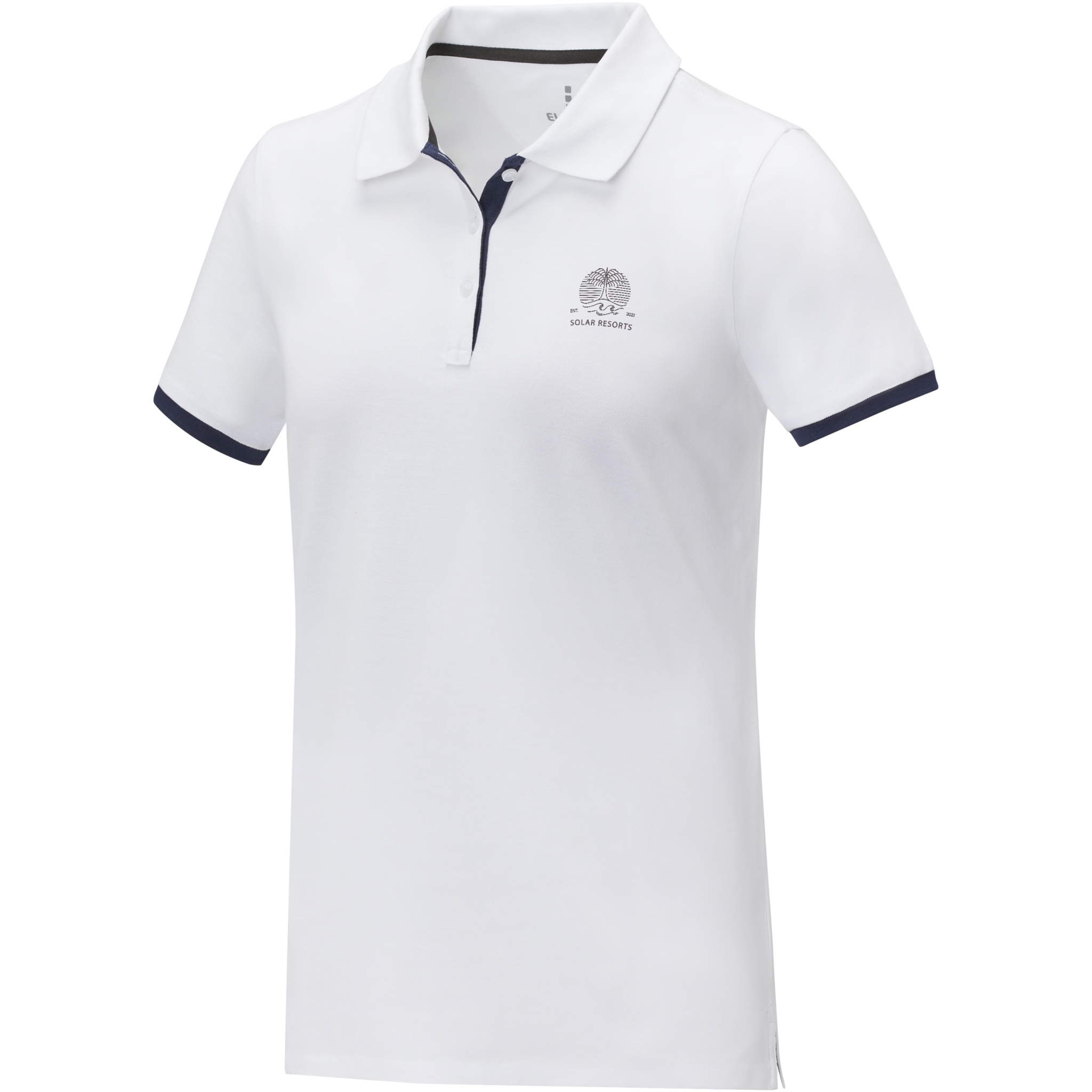 Morgan lyhythihainen naisten kaksivärinen poolo on tyylikäs ja mukava vaihtoehto mihin tahansa rentoon tai liiketilaisuuteen. Poolo on valmistettu 200 g/m2 pikee-puuvillaneuloksesta, joka on sekä kestävää että hengittävää. Poolossa on litteä neulekaulus ja kontrastivärisillä yksityiskohdilla varustetut ribbihihansuut. Kahden napin nappilista ja viimeistellyt tikkaukset tuovat hienostuneisuutta ja satiininen niskateippi ja siirtokuvamerkintä niskassa takaavat käyttömukavuuden ja helppokäyttöisyyden. Muotoonleikattu naisille.
