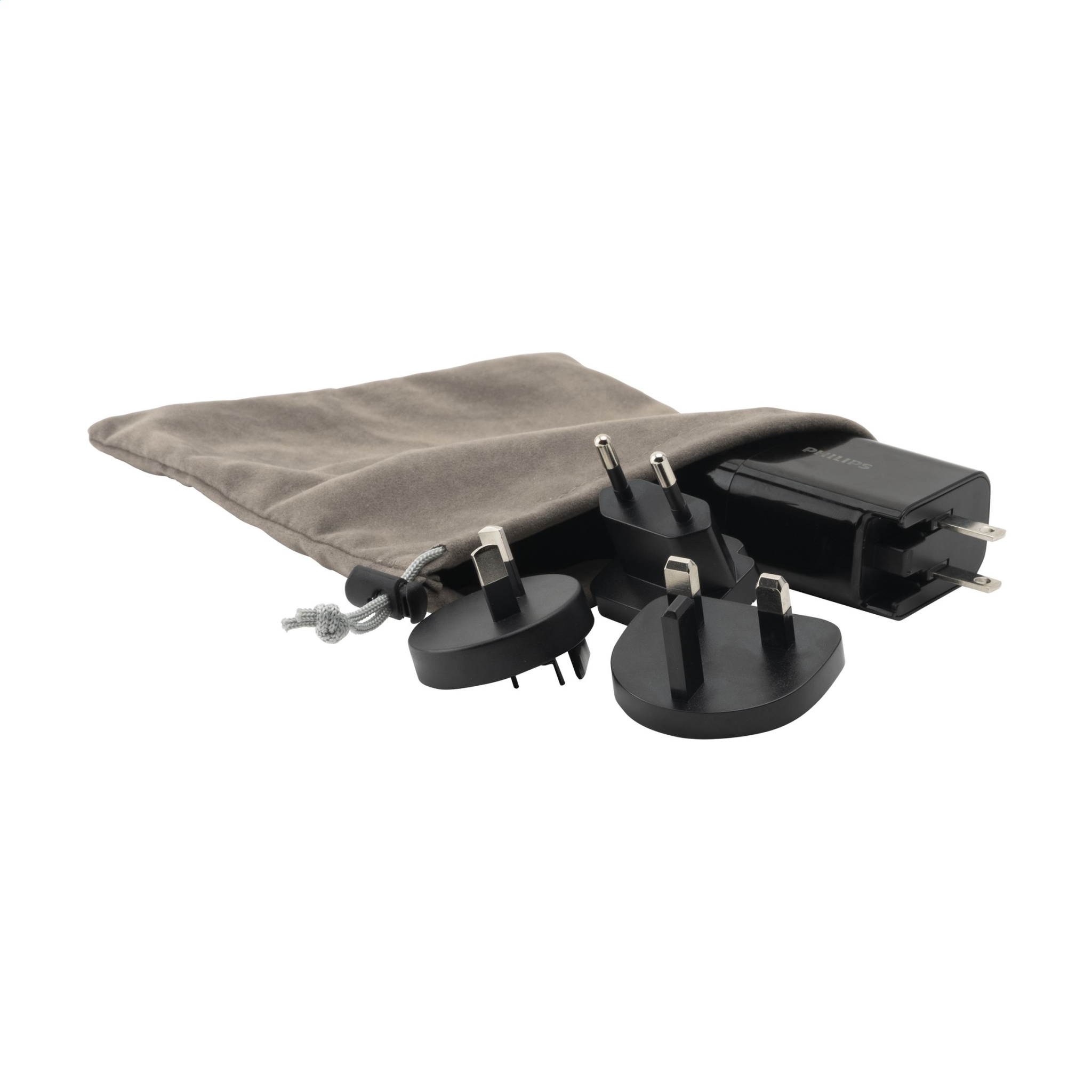 Ihanteellinen matkoille, neljä vaihdettavaa pistoketta ja kätevä matkalaukku. Lataa laitteesi salamannopeasti tehokkaan USB-C-portin avulla, jossa on PD-tuki. Käytä USB-A-porttia muiden laitteiden lataamiseen samanaikaisesti. Mukana 4 pistoketta: integroitu US-pistoke ja vaihdettava AU-, UK- ja EU-pistoke. Tulo: 100-240V, 50-60Hz 0,7A. Lähtö: USB A 5V/2.4A. Tyyppi-C 5V/3A, 9V/2A, 12V/1,5A. Jokainen tuote on pakattu erikseen.