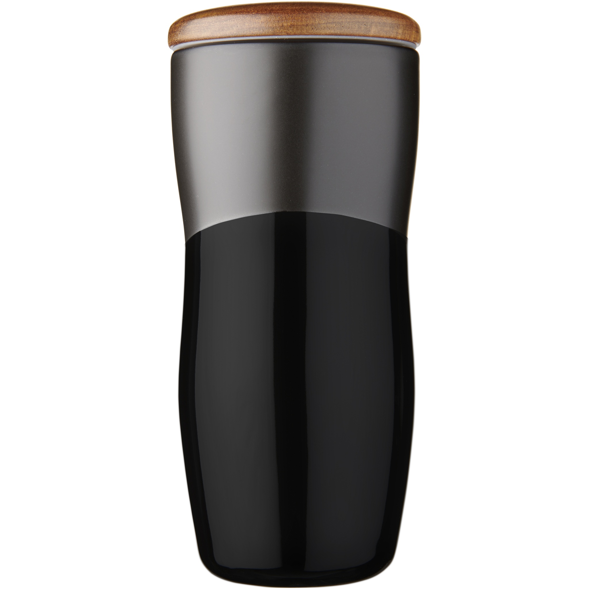 Reno 370 ml:n kaksiseinämäinen keraaminen termosmuki, Tasainen musta