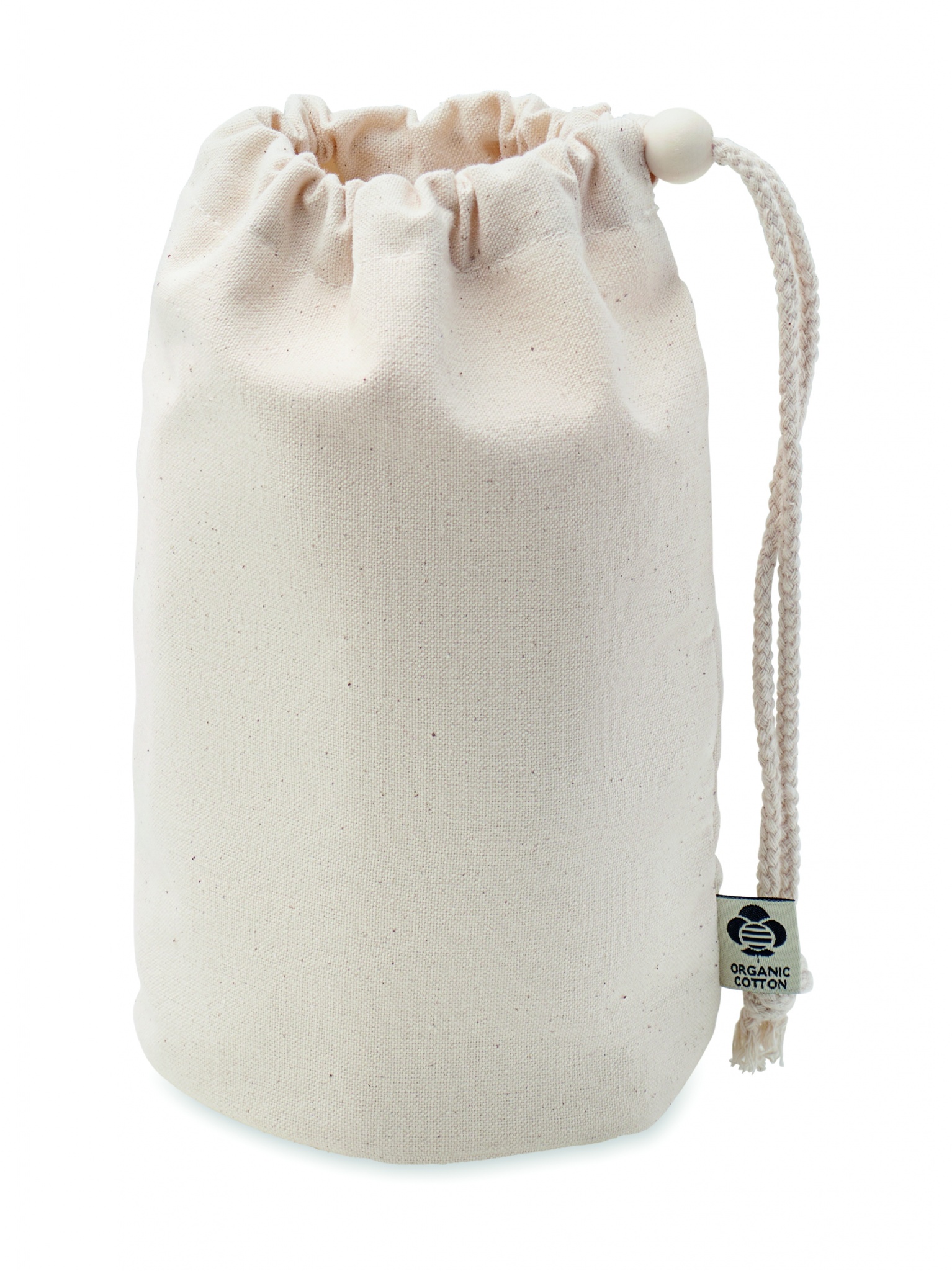 220 gr/m² pieni säilytyspussi orgaanisesta puuvillasta, puisella sulkimella.