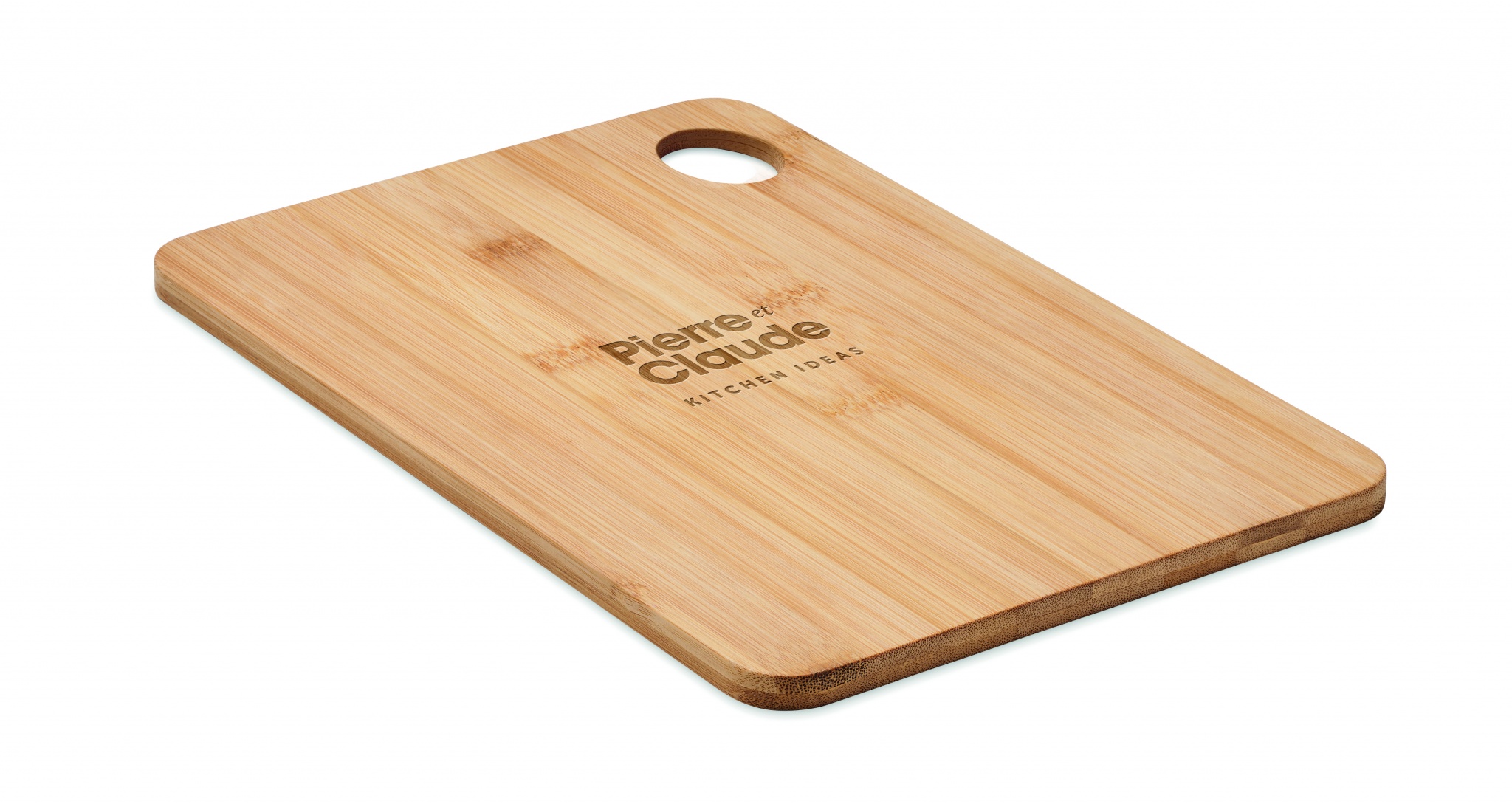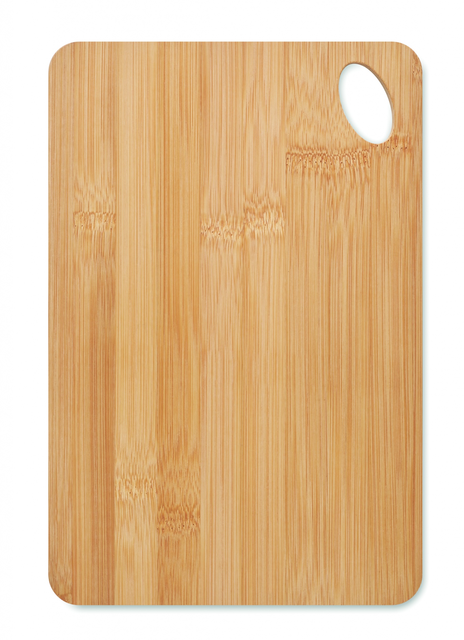 Bambupuusta tehty suuri leikkuulauta, jossa on ripustusreikä.