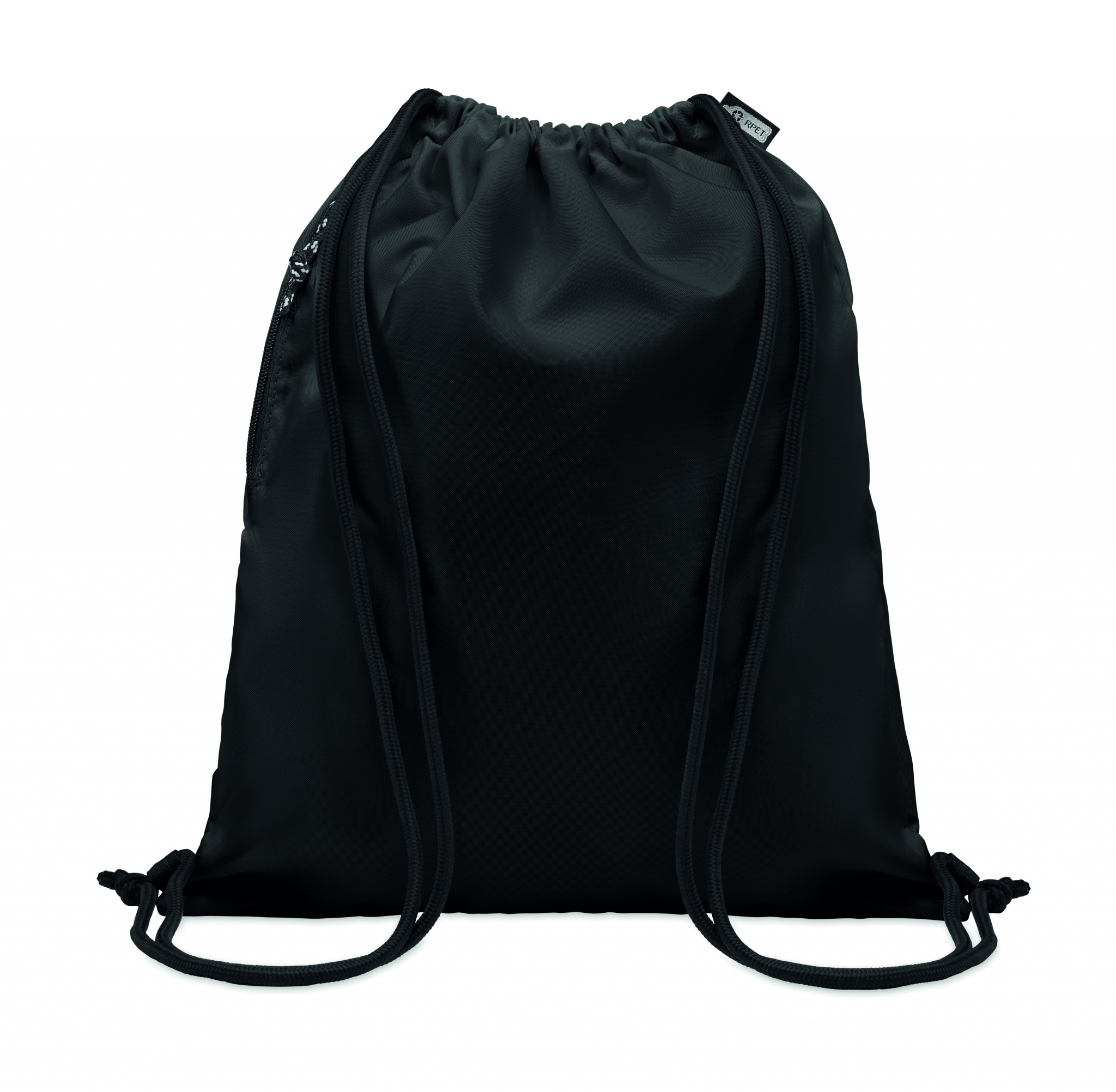 300D RPET polyesteristä valmistettu suuri narureppu , jossa on vetoketjullinen sivutasku. Paksut narut.