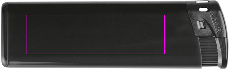 Elektroninen muovisytytin liekinsäädöllä ja uudelleentäyttötoiminnolla. Painamme logosi sytyttimeen.