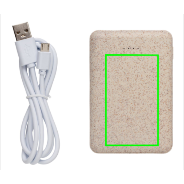 Logo trade liikelahja kuva: Taskuvaravirtalähde 5 000 mAh vehnän oljista