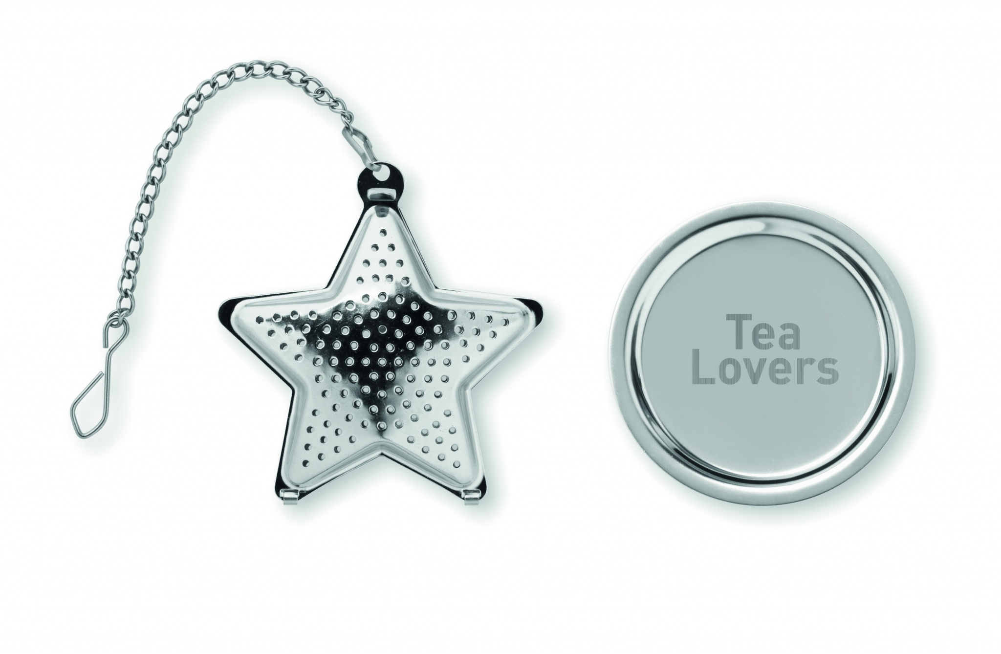 Tähden muotoinen teesiivilä, valmistettu ruostumattomasta teräksestä.