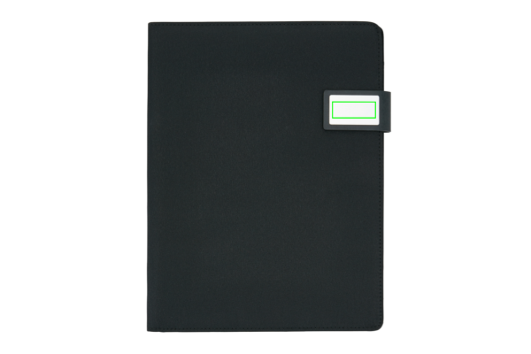 A4 tekninen kansio magneettisulkimella. Sisältää tabletti-/matkapuhelintelineen ja puhelinpidikkeen läpinäkyvällä ikkunalla, jonka avulla voit käyttää laitettasi. Sopii yleisimpiin puhelimiin, kuten iPhone 6 ja Samsung S6. Tasku papereita ja 2 korttia varten. Mukana myös kynälenkki. Sisältää 1 kierrätetyn A4 muistilehtiön 20 sivulla.