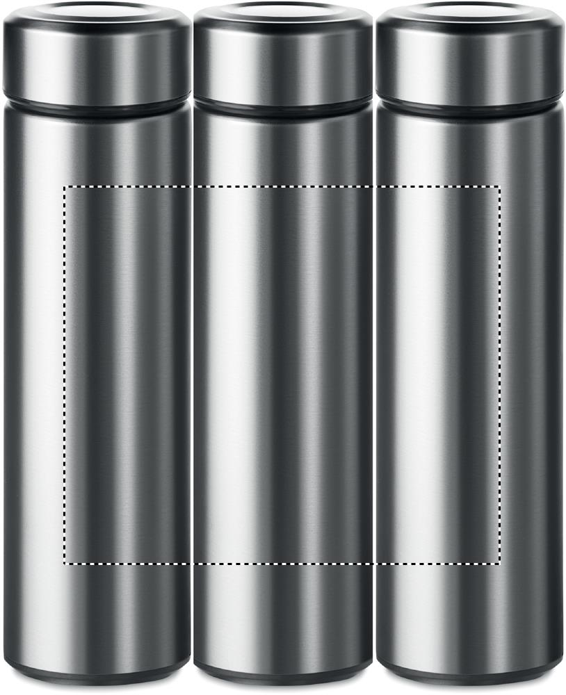 Kaksiseinäinen ruostumattomasta teräksestä valmistettu 425 ml tyhjiötermospullo, teesiivilällä. Tuote on vuoto vapaa.