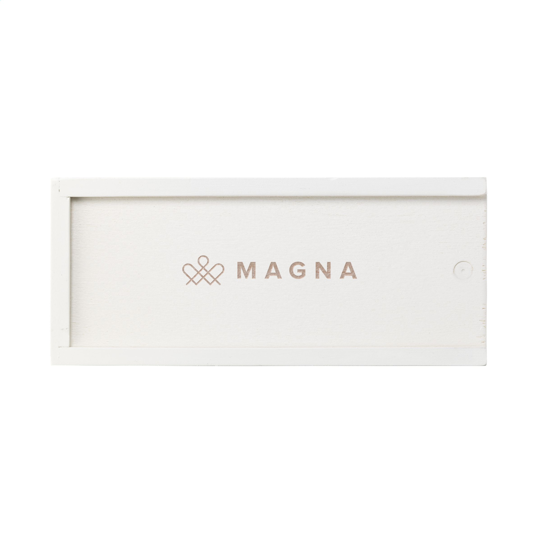 Puinen pinoamispeli (48 palikkaa). Tornin mitat 16,5 x 6 x 6 cm. Mukana valkoinen puinen laatikko, jossa on liukuva aukko säilytystä varten. Sisältää ohjeet. Jokainen tuote toimitetaan erillisessä ruskeassa pahvilaatikossa.