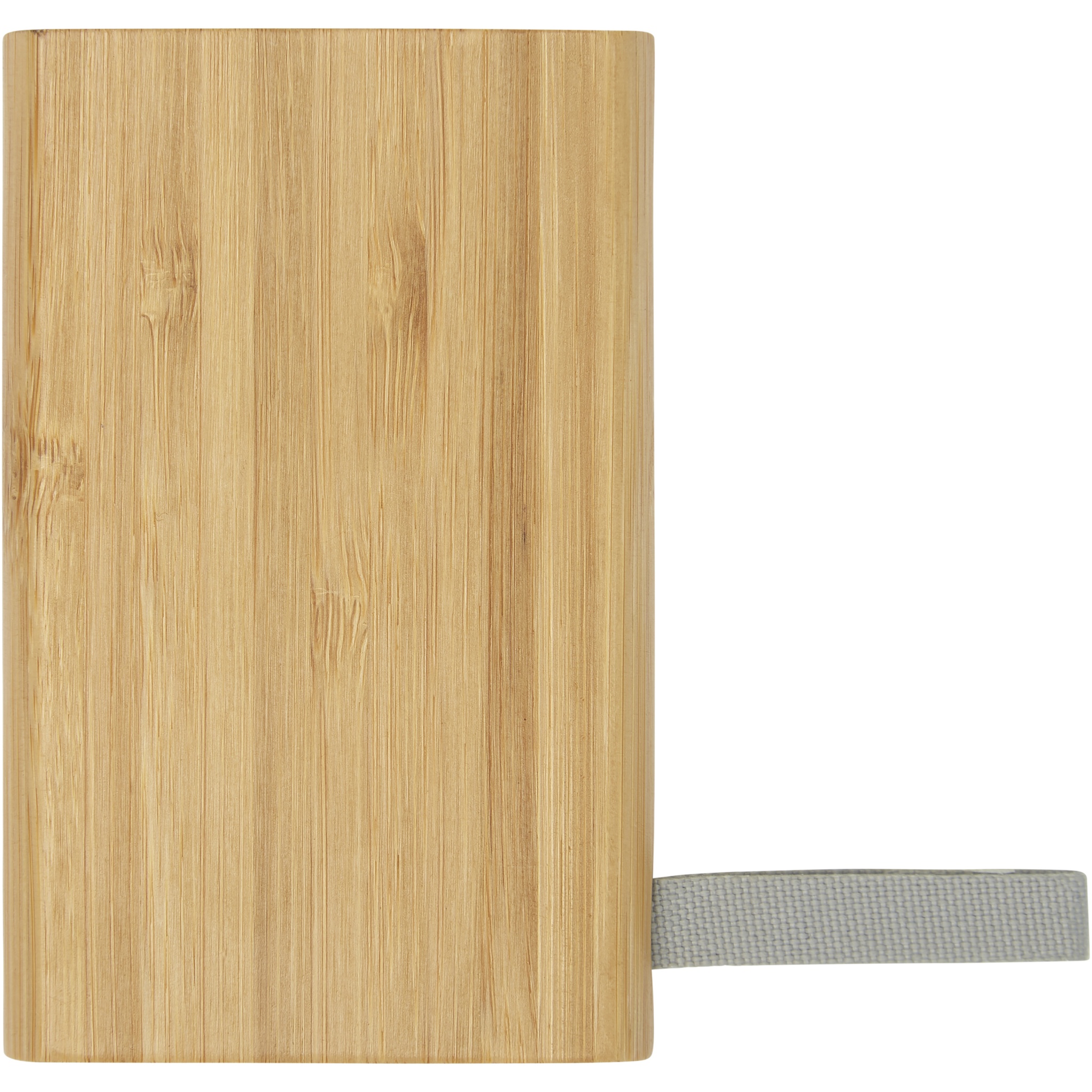 Bambusta tehty varavirtalähde, joka tarjoaa 5 000 mAh:n varavirran matkapuhelimille tai muille digitaalisille laitteille. Siinä on LED-merkkivalot ja RPET-materiaalista valmistettu hihna. Mukana Mikro-USB-kaapeli. Pakattu lahjapakkaukseen ja mukana ohjekirja (molemmat valmistettu ympäristöystävällisestä materiaalista). Koska bambu on luonnollinen tuote, tuotteen värissä ja koossa voi olla pieniä eroja, jotka voivat vaikuttaa logomerkinnän lopulliseen ulkonäköön.