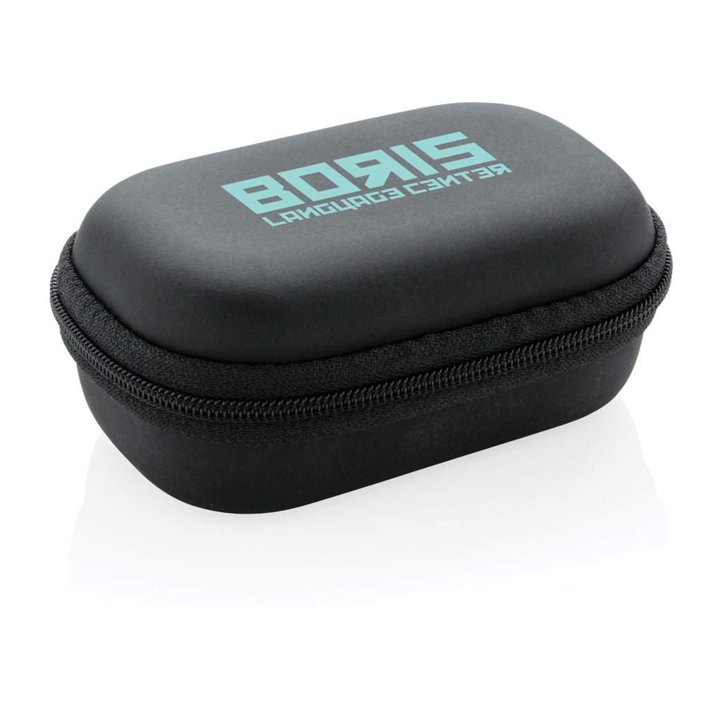 Logo trade liikelahja kuva: TWS urheilukuulokkeet latauskotelossa