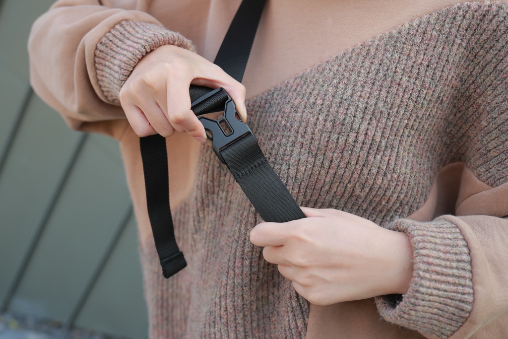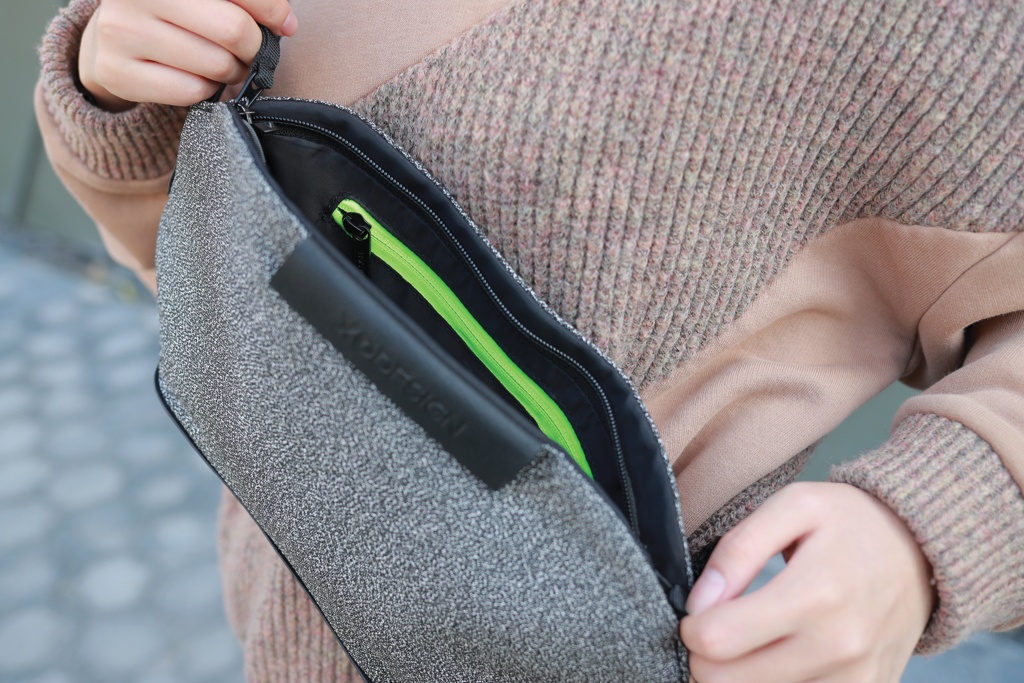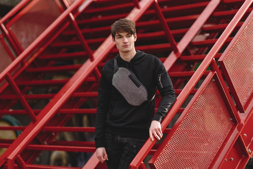 Tämä uber-toiminnallinen vyölaukku muuntaa katumuodin turvallisimmaksi varkaudenestolaukuksi. Ominaisuudet, kuten viiltosuojattu materiaali, lukittava vetoketju sekä turvallinen kolmen pisteen solkiaukaisu, pitävät huolen, että tavarasi pysyvät turvassa. Voit käyttää sitä tyylikkäästi vyölaukkuna,crossbody tyyyliin olan yli tai olkalaukkuna. Rekisteröity design®