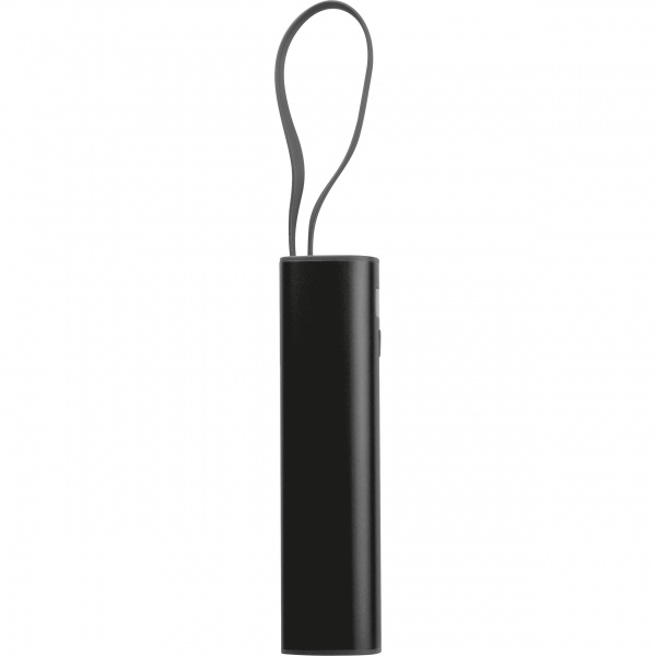 Alumiinista valmistettu varavirtalähde, jossa on 5 000 mAh:n litiumioniakku, lataustason näyttö ja integroitu USB-C-latauskaapeli. Mukana tulee 30 cm:n Type-A - Type-C -latauskaapeli. Logosi on laserkaiverrettu näytön alle.