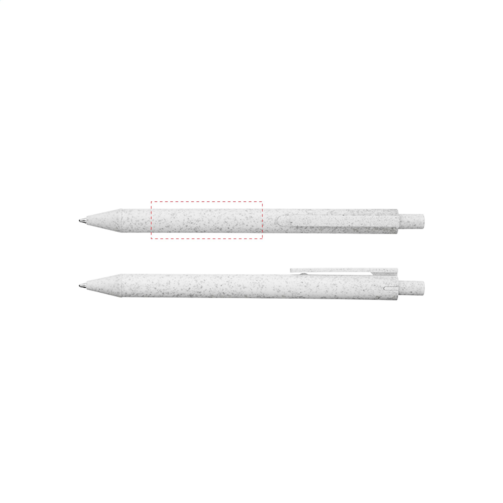 Ympäristöystävällinen, sinisellä musteella varustettu kuulakärkikynä, joka on valmistettu 50 % PP:stä ja 50 % vehnän oljesta. Piippu, pidike ja painonappi on valmistettu samasta materiaalista ja koko kynässä on tyylikäs yksivärinen muotoilu. Osittain biohajoava.
