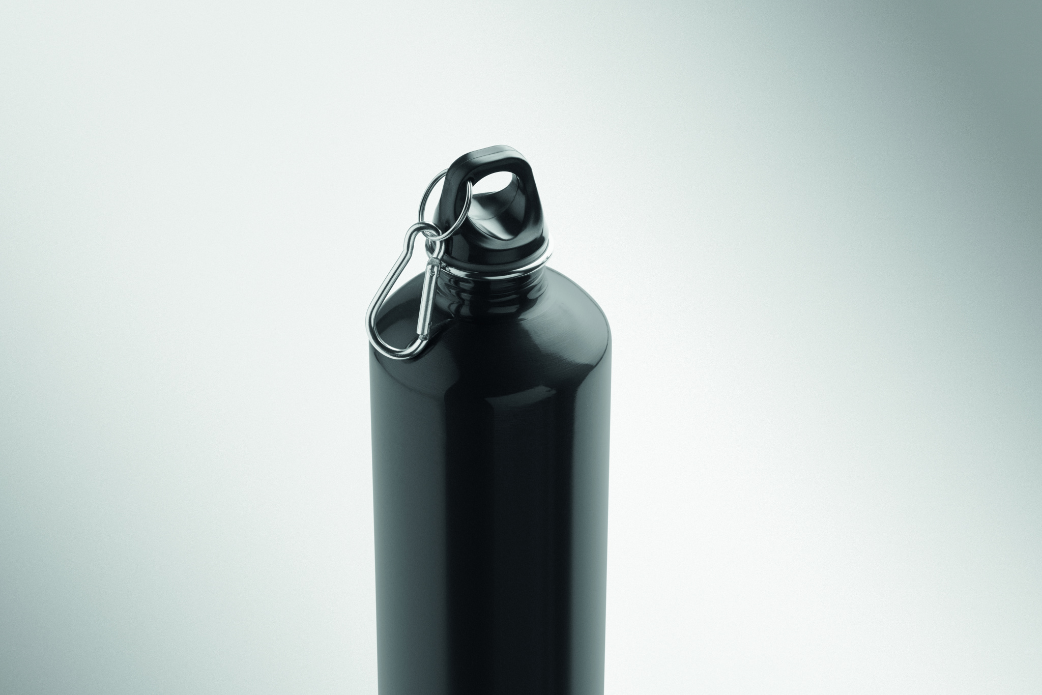 Yksiseinäinen 1000 ml juomapullo, 90 % kierrätettyä ruostumatonta terästä. Mukana PP-kansi ja karabiineri. Yksiseinäinen rakenne ei eristä lämpöä, joten lämpö siirtyy pullon läpi.