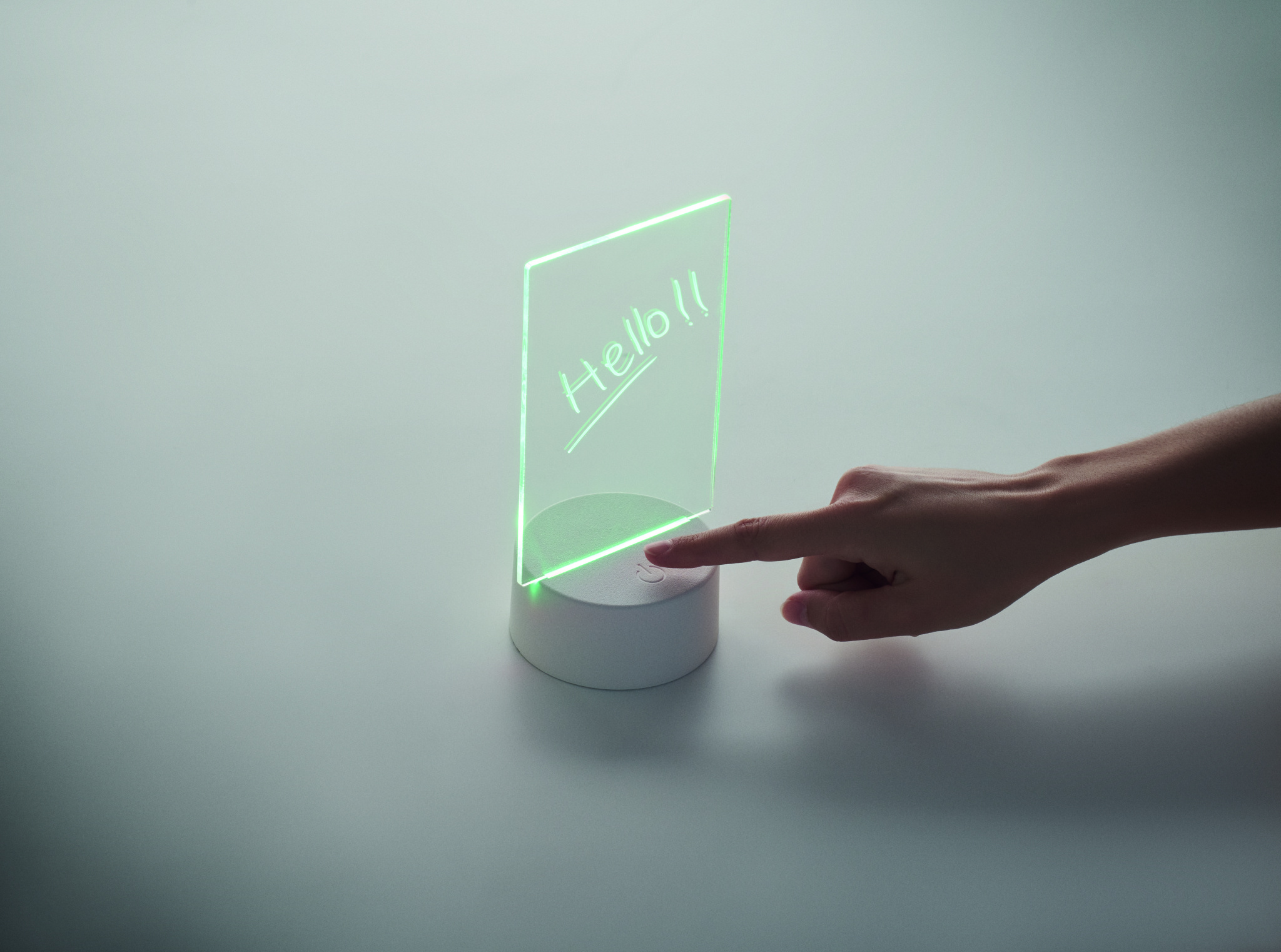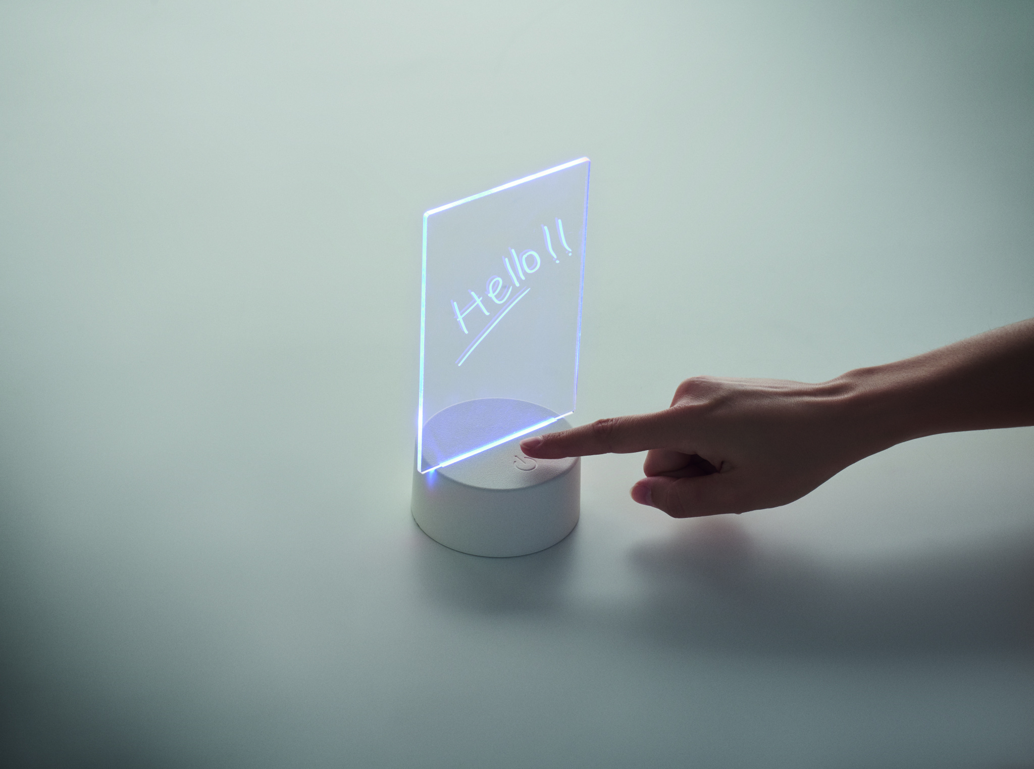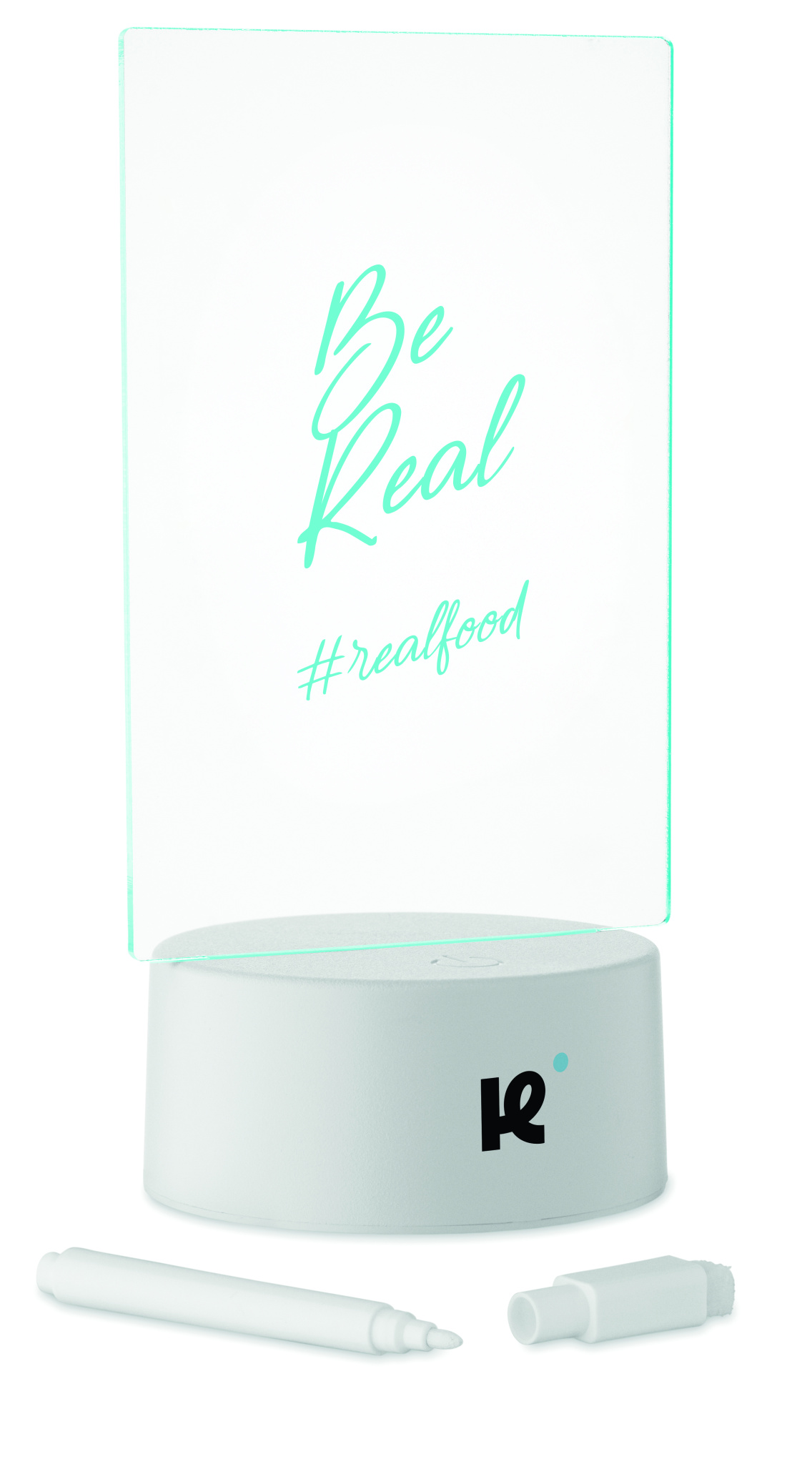 Šviečianti LED atmintinių lenta su spalvą keičiančia lempute ir ištrinamu baltu žymekliu. Su akrilo lenta ir aliuminio pagrindu. Maitinamas baterijomis, reikalingos 3 x AAA baterijos (nepridedamos).