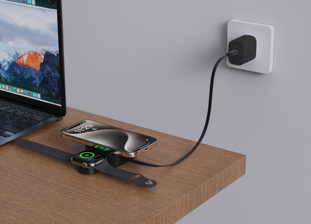 Logotrade reklaminės dovanos nuotrauka: „Urban Vitamin Goleta“ 2 viename 15 W magnetinis belaidis įkroviklis