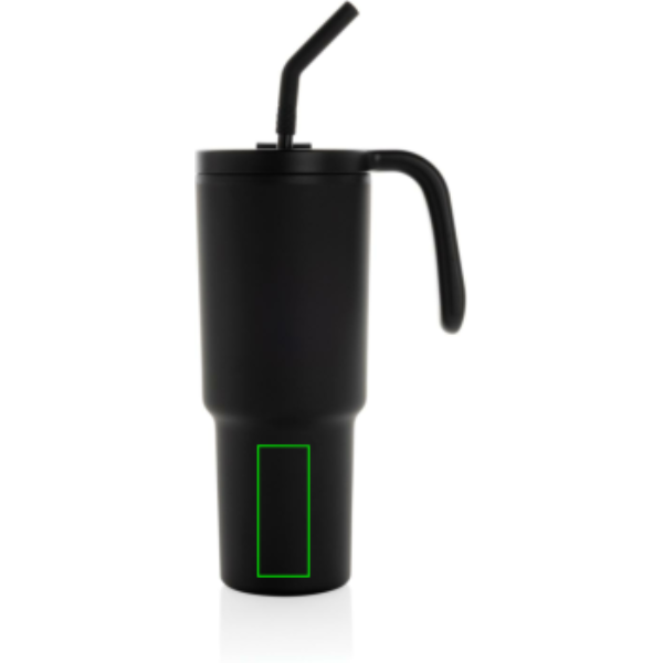 Populārākā krūze tagad piemērota perfektai 360 grādu ķermeņa apdrukai. 900 ml trauks, kas paredzēts videi draudzīgai mitrināšanai, izgatavots no pārstrādātiem materiāliem. Neatkarīgi no tā, vai strādājat, vingrojat vai ceļojat, šī trauks ir jūsu ideāls pavadonis. Novatoriskajam vākam ir rotējošs vāciņš ar trim pozīcijām: pret izšļakstīšanos izturīgu salmu atveri, iztecēju un pilnībā noslēgtu vāku. Ergonomiskais rokturis ar ērtiem satvēriena ieliktņiem nodrošina vieglu pārnēsāšanu, un plānā pamatne ir piemērota lielākajai daļai automašīnu krūzīšu turētāju. Mazgāt tikai ar rokām. Nesatur BPA. Tilpums: 900ml. Ietver FSC® sertificētu kraft dāvanu iepakojumu. Kopējais pārstrādātais saturs: 36% no kopējā preces svara.