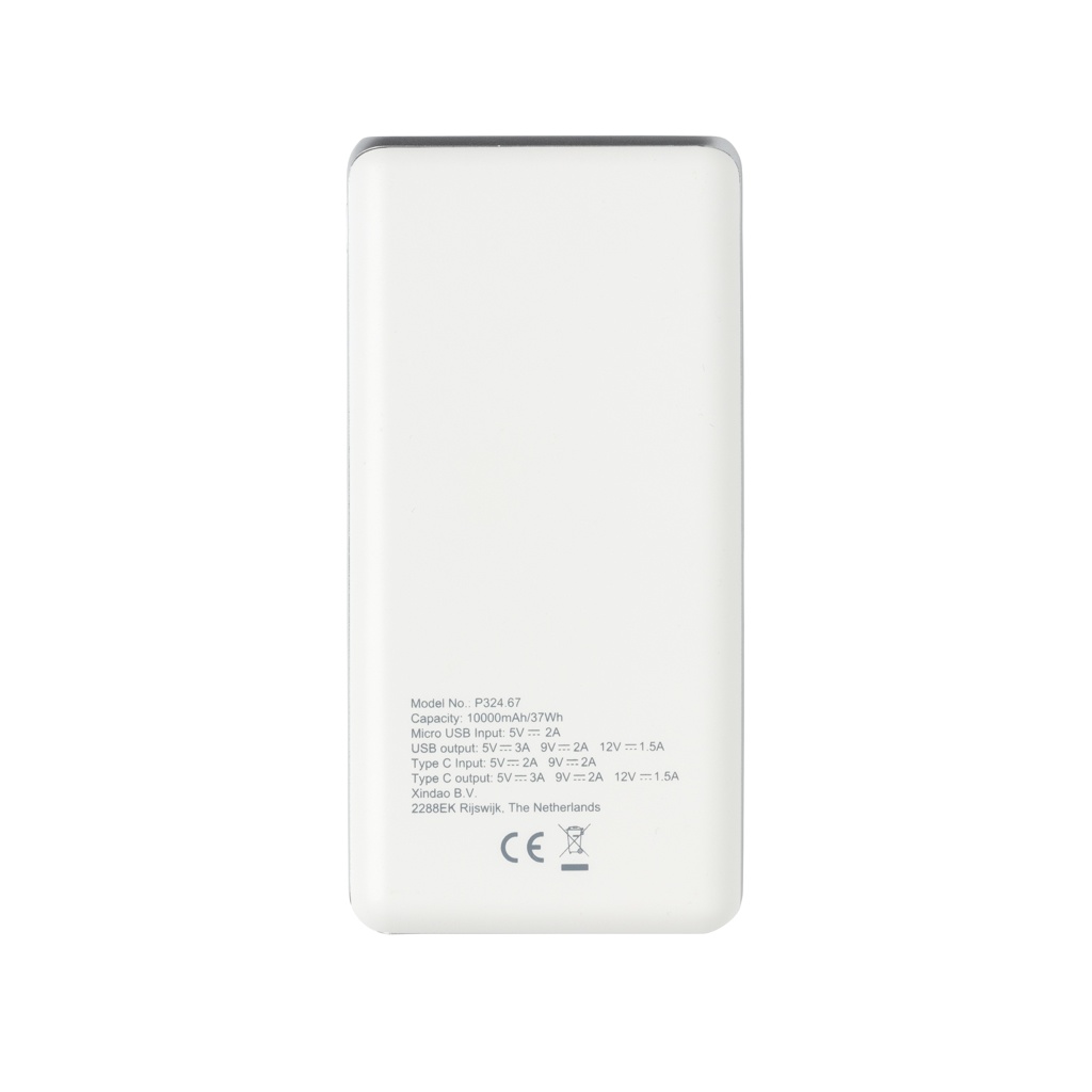 Mūsdienīga 10 000 mAh jaudas banka, kas piedāvā ātrāko pieejamo uzlādes pieredzi. Izgatavots no ABS. Ar C tipa pieslēgvietu, kas atbalsta iPhone un Macbook (maks. 18W) strāvas padevi, un parasto USB portu. Mikro USB ieeja: 5V/2A. USB izeja: 5V/3A 9V/2A 12V/1,5A. C tipa ieeja: 5V/2A 9V/2A. C tipa izeja: 5V/3A 9V/2A 12V/1,5A.
