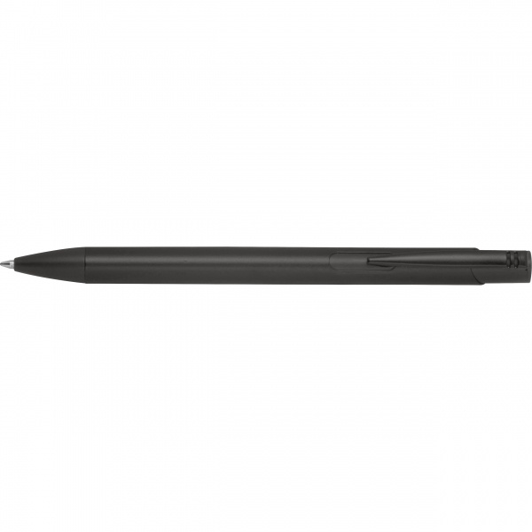 Pilnkrāsu lodīšu pildspalva, kas izgatavota no pārstrādāta alumīnija, ar zili rakstošu lielas ietilpības uzpildi. Jūsu logotips ir iespiests zem klipša, izmantojot lāzergravējumu.