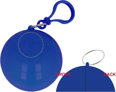 Caurspīdīgs PE pončo, kas ietīts AS lodīšu čaulā ar karabīnes āķi, ko pakārt pie jostas vai somas.
