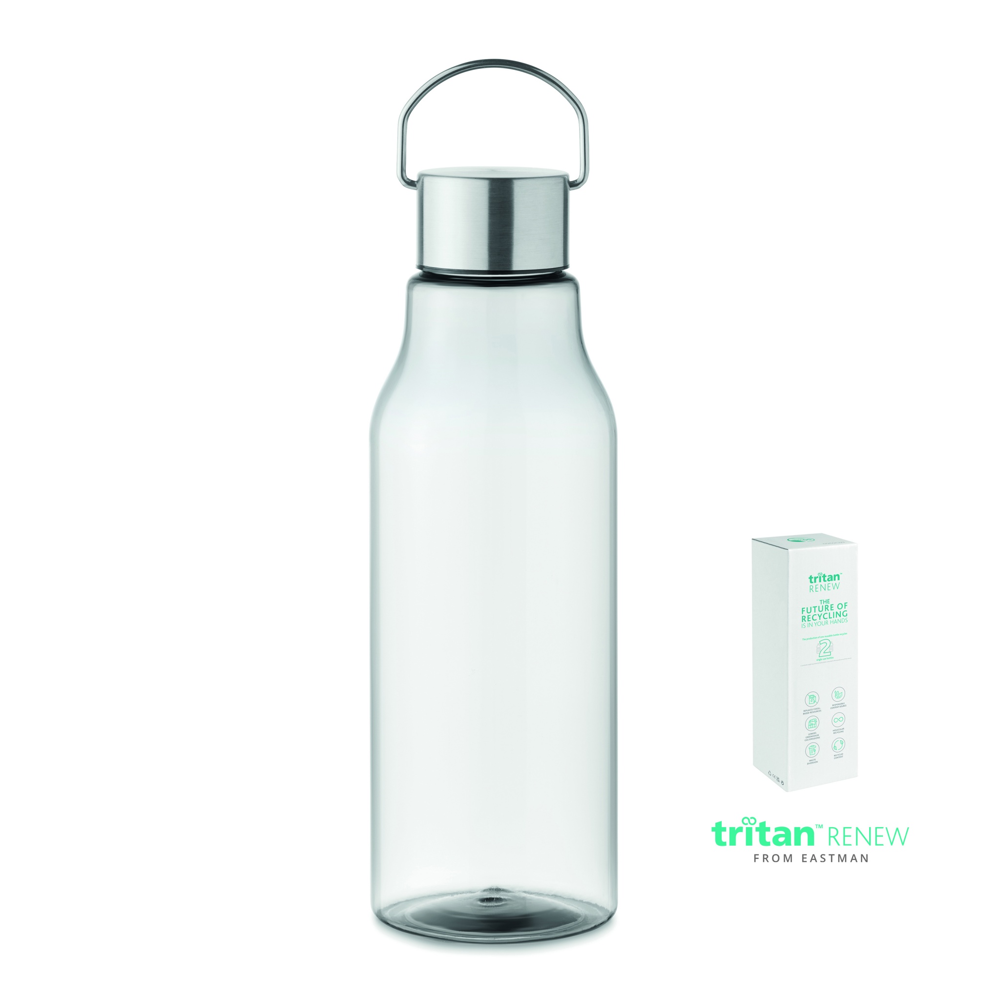 Dzeramā pudele no Tritan Renew™, kas nesatur BPA ar nerūsējošā tērauda roktura vāku. Bez noplūdēm. Tilpums: 800 ml. Šis produkts ir iegūts no 50% plastmasas atkritumu, izmantojot ISCC sertificētu masas līdzsvaru.