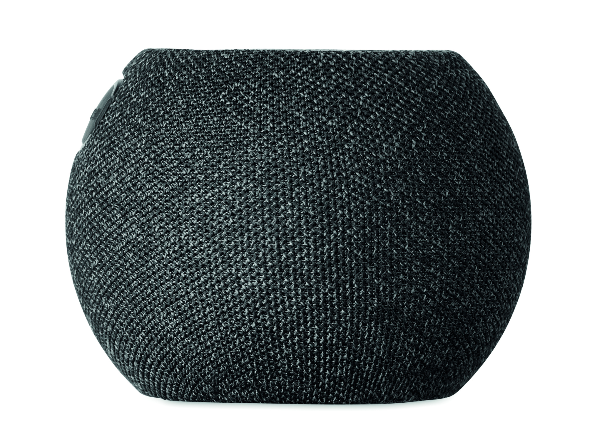 5.0 wireless speaker and 15W wireless charging in ABS and RPET fabric and black coated bamboo detail on top. 1 Rechargeable Li-ION 1200 mAh battery included. Includes an SD card port and an AUX/ USB cable. Output data: 5W, 3 Ohm and 5V. Playing time approx. 5h.