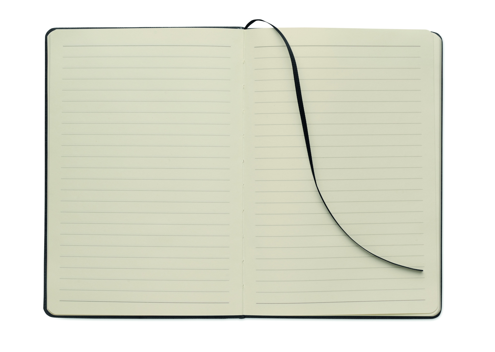 A5 notebook with RPET hard cover with phone holder functionality. Integrated 2-in-1 inkless and regular ballpen in ABS. Casebound. 192 recycled paper lined pages (96 sheets). Matching strap and bookmark.